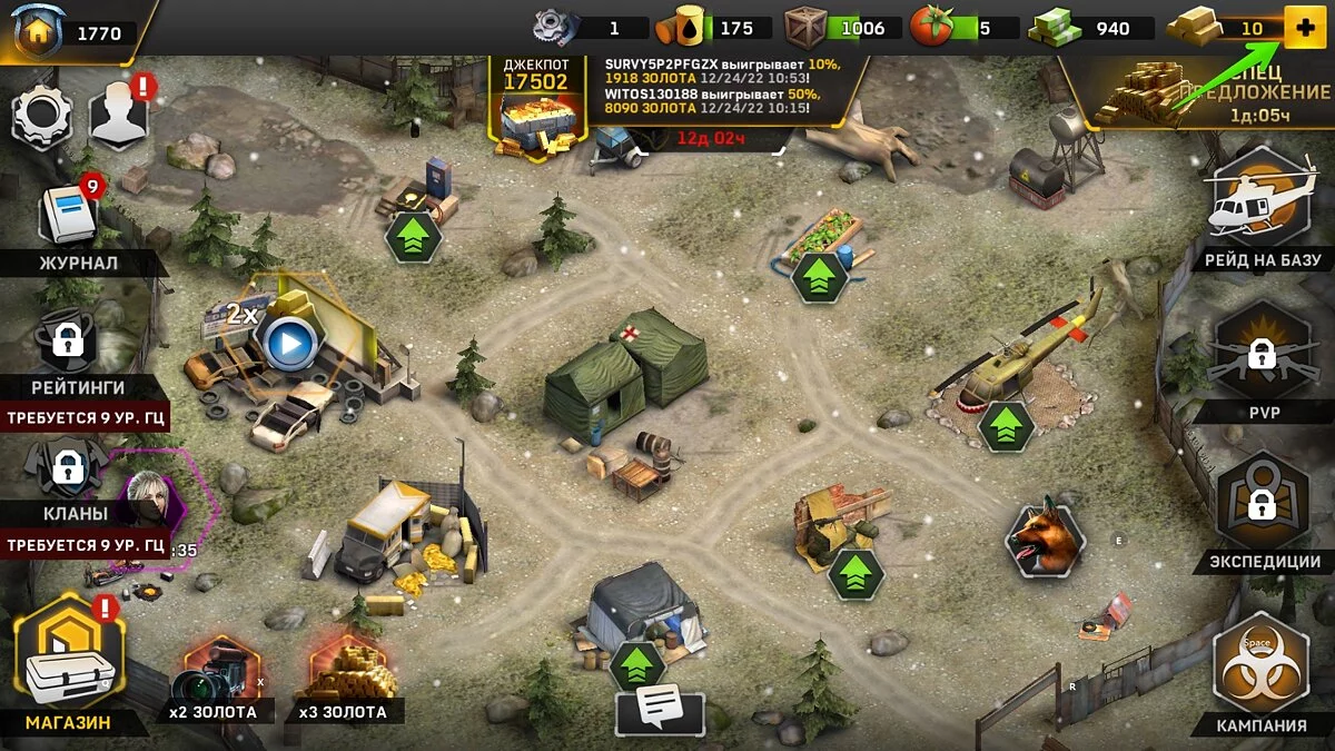 После этого вернитесь в своё поселение и нажмите на иконку золота в правом верхнем углу.