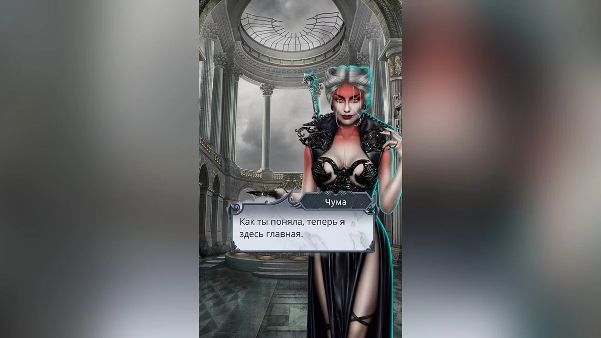 Пайк отвёл героиню в зал заседаний, где на троне восседала Чума. Неподалёку от неё расположились и старые товарищи девушки: Дино, Люцифер и Мими, а также незнакомая женщина и ангел Фенцио. Чума обратилась к ней.