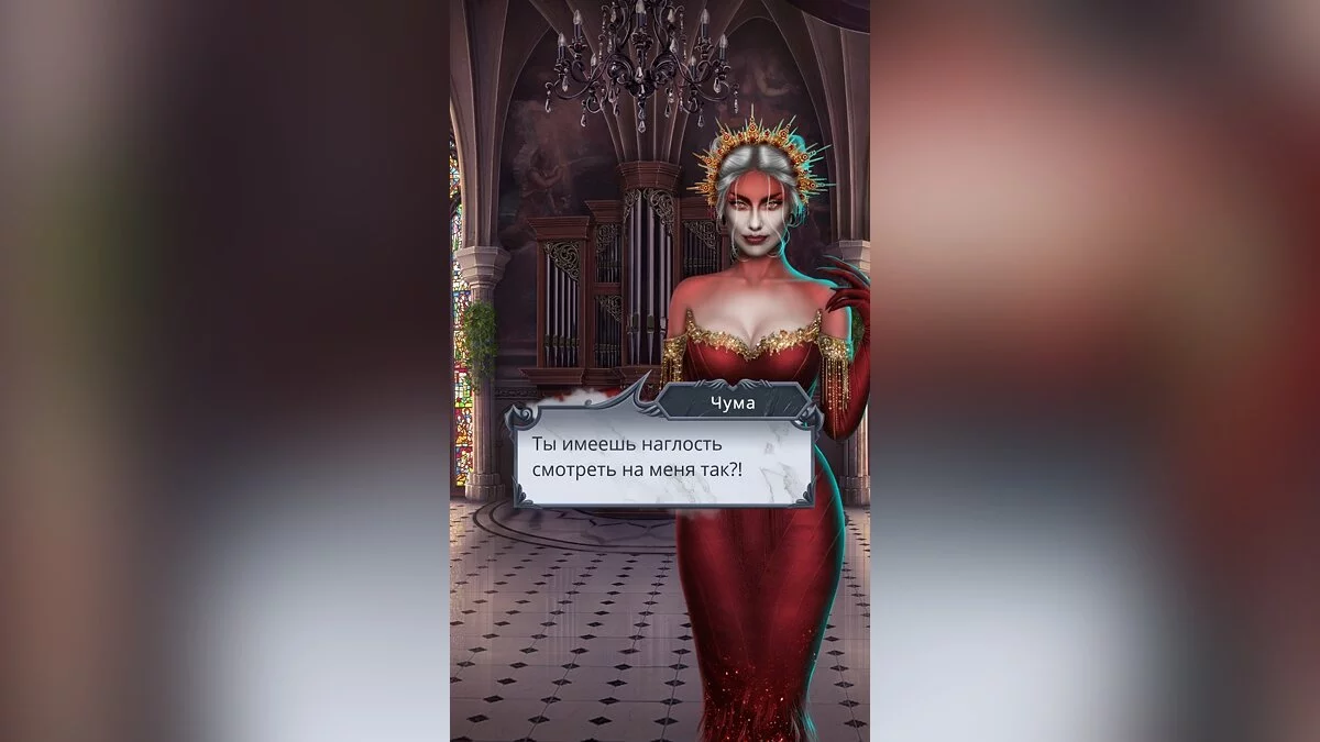 Проснувшись, ты увидела перед собой Чуму. Люцифер соврал ей, сказав, что ты сама убила своего отца. По этому случаю Чума принесла наряды и приказала явиться на бал.