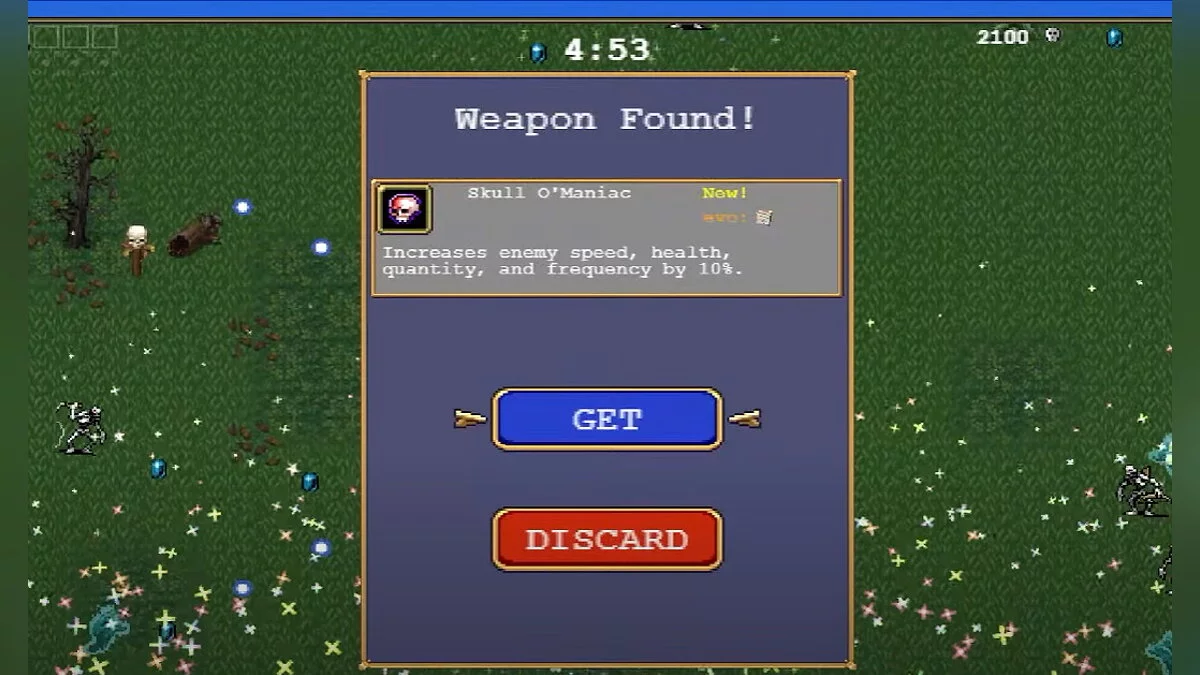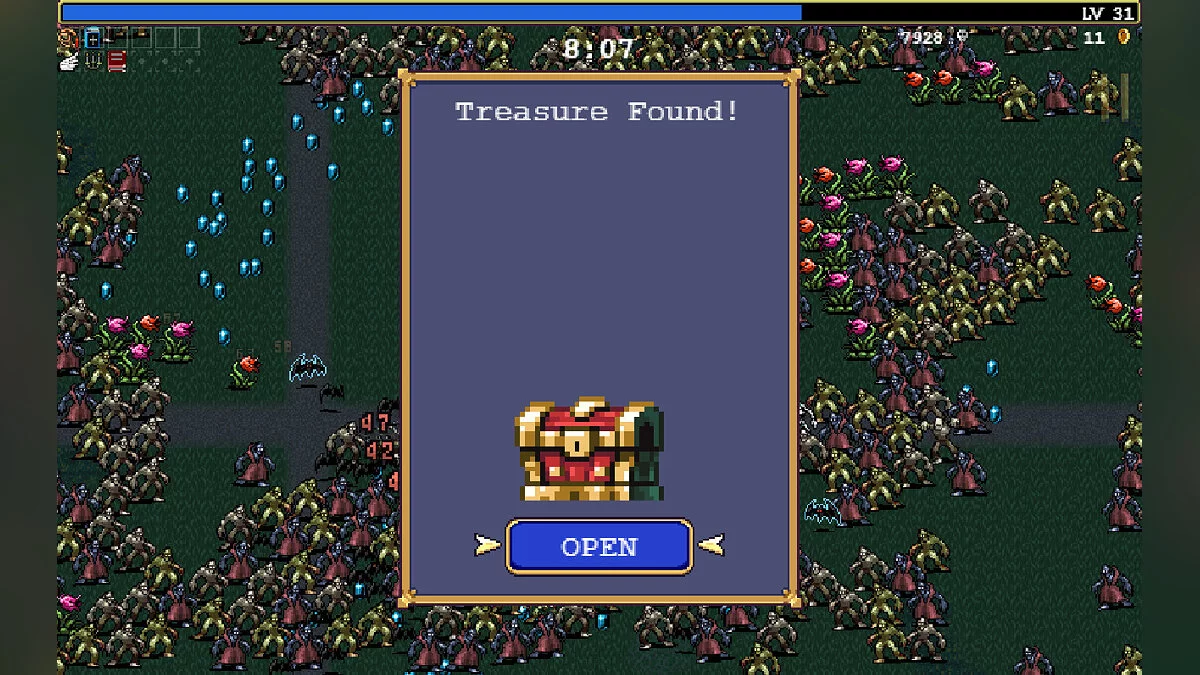 - Желательно, но не обязательно разблокировать предмет под названием Безумный Грув VIII (Mad Groove VIII). Он откроется, если вы продержитесь 31 минуту на уровне Безумный лес (Mad Forest). Это устройство притягивает все предметы на уровне к игроку