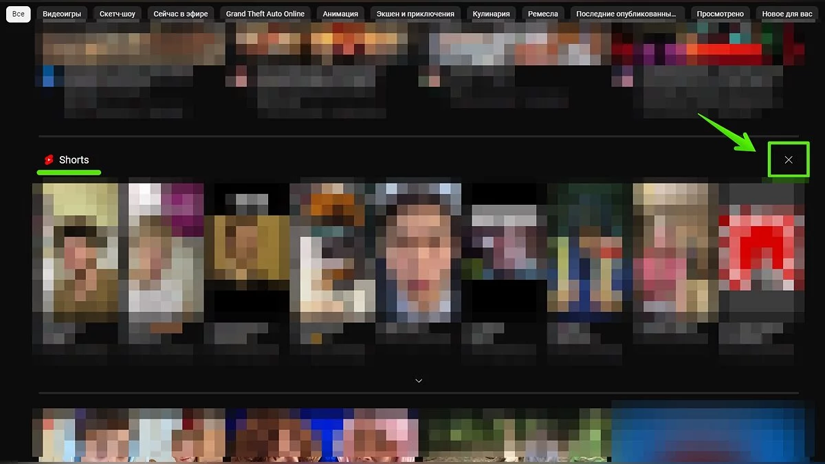 Ещё один надёжный способ избавиться от блока «шортсов» — просматривать видео на YouTube в браузере. Не важно, на каком устройстве вы посещаете платформу, ведь, в отличие от приложения, здесь вы сможете отказаться от просмотра коротких роликов всего одним кликом — в правом верхнем углу блока есть крестик, полностью скрывающий блок до повторного обновления страницы (если вы не вошли в свой аккаунт). Для зарегистрированных пользователей раздел будет скрыт на 30 дней.