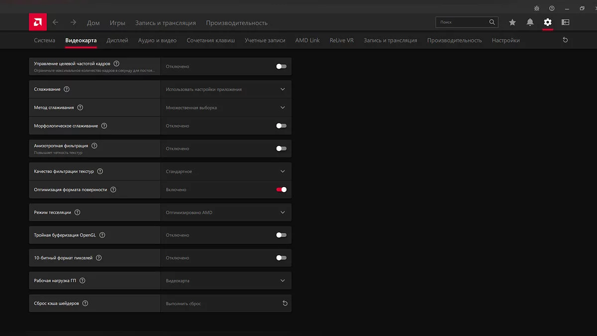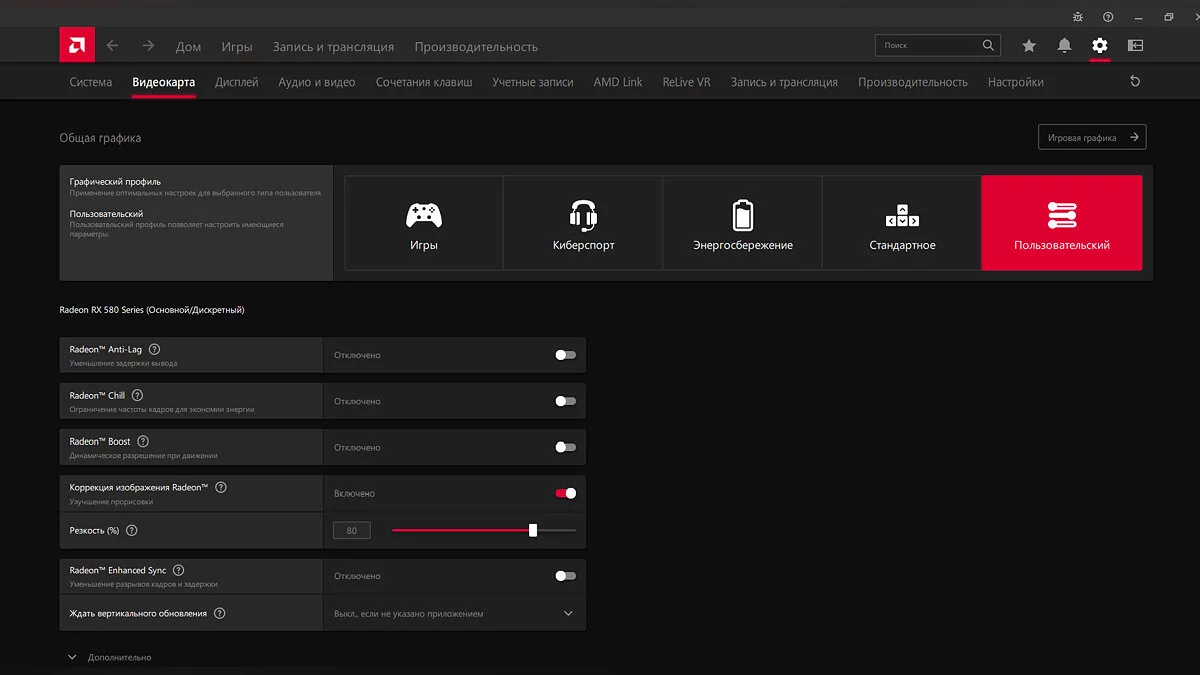 - «Radeon Enhanced Sync» — «Выкл.»;
