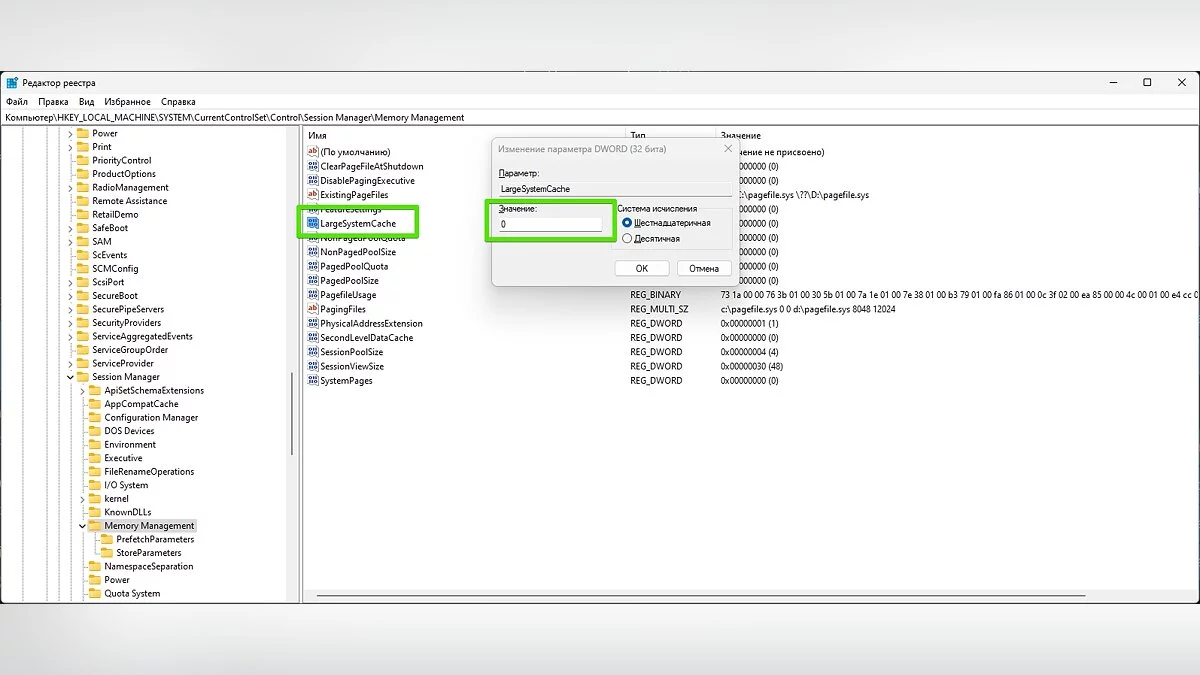 - Путь: «Компьютер\HKEY_LOCAL_MACHINE\SYSTEM\CurrentControlSet\Control\Session Manager\Memory Management» без кавычек.