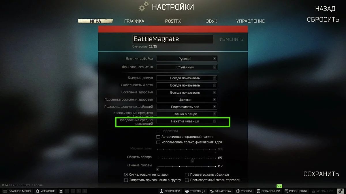В недавнем обновлении разработчики внедрили в игру функцию «Преодоление средних препятствий», при помощи которой можно перебираться через невысокие преграды. По умолчанию этот параметр стоит на настройке «Нажатие клавиши», однако многие игроки устанавливают «Авто». Некоторые геймеры отмечают, что именно это в значительной степени может повлиять на просадки FPS во время игры на больших локациях, таких как «Улицы Таркова». Настоятельно рекомендуем включить «Нажатие клавиши».