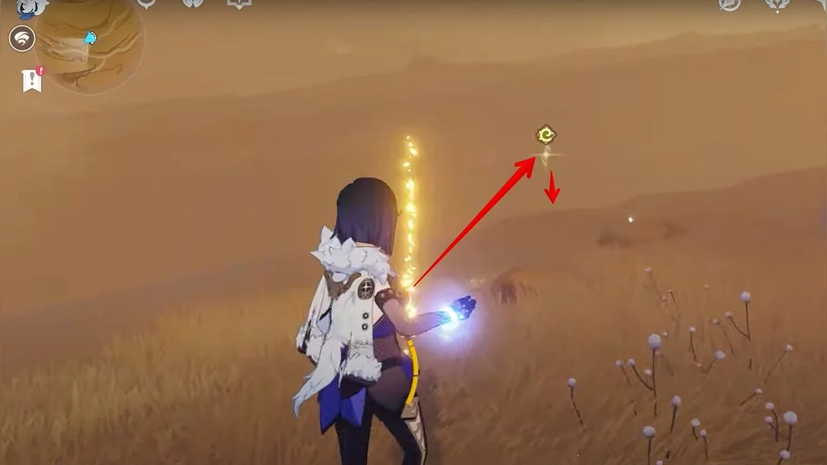 Ещё одна награда, которая связана с Унутом Сетехой. Когда у босса останется меньше 40% здоровья он перейдёт во вторую фазу и начнёт летать. А в воздухе появятся полупрозрачные шары. Их можно разрушить элементальной атакой Пиро, Гидро или Крио-стихии. Рекомендуем использовать стрелы лучника.