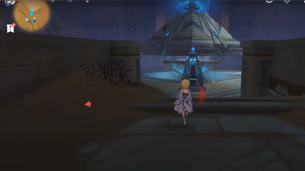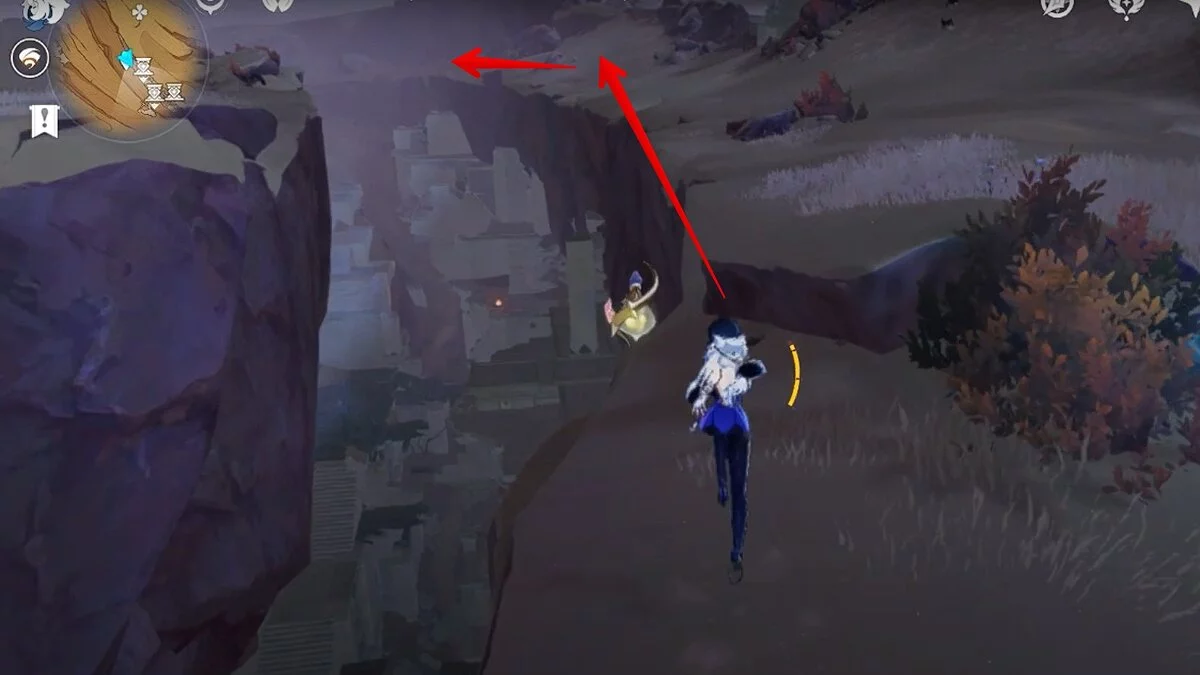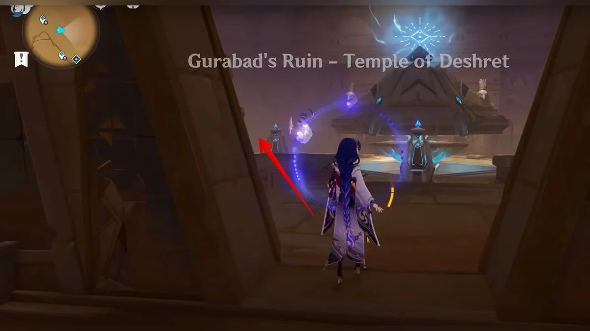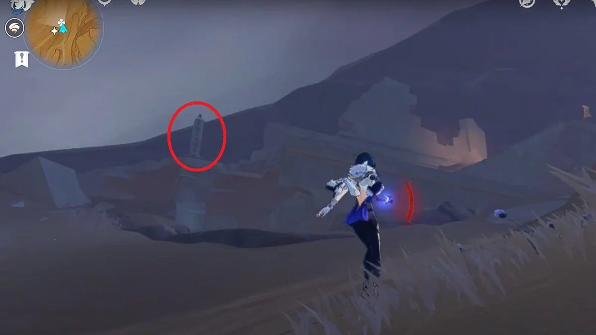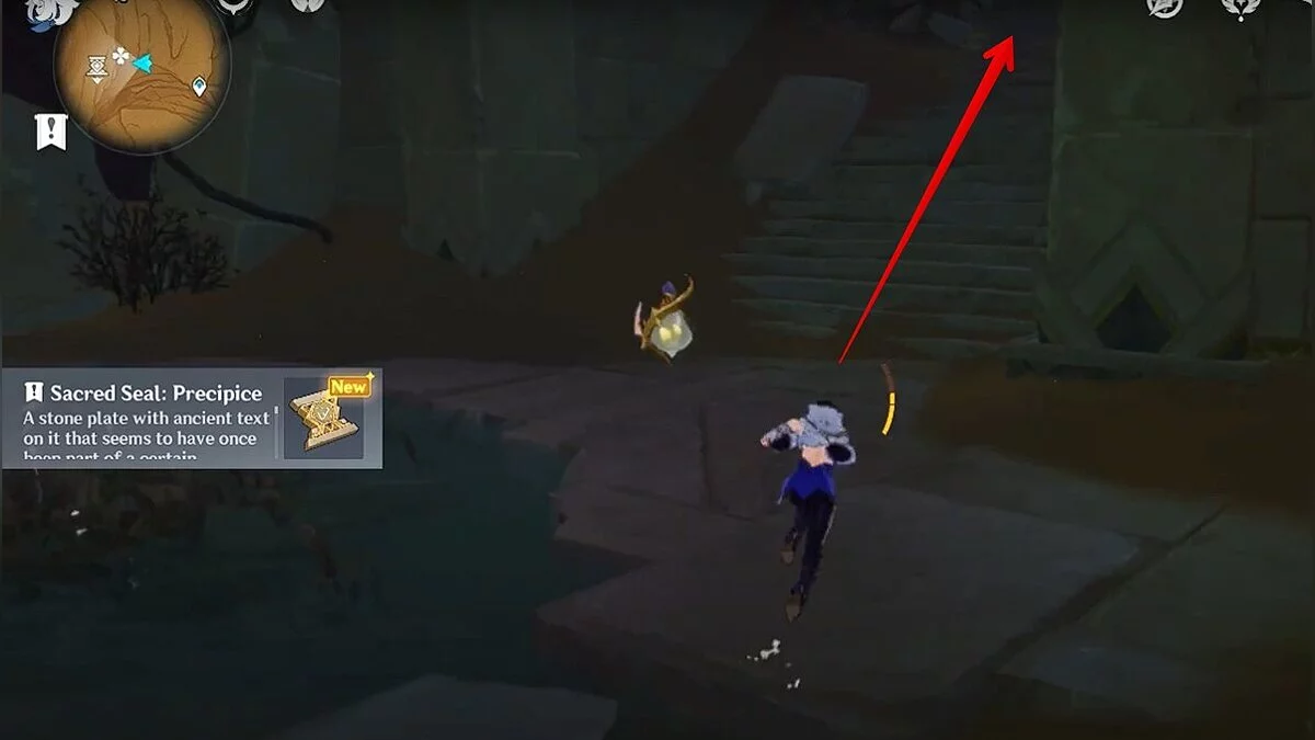 Прыгайте вниз и летите направо. Обелиск возвышается над руинами. Взаимодействуйте с ним, чтобы на вашей карте появилось местоположение скрижалей.