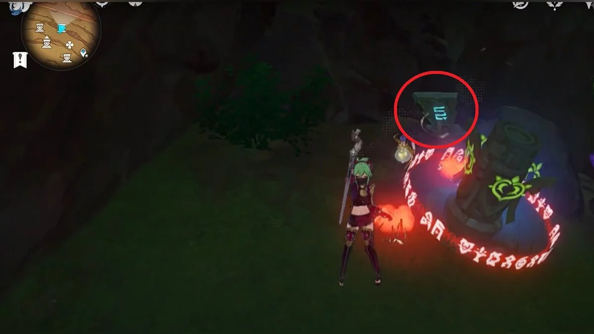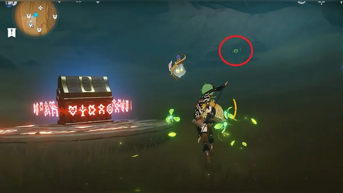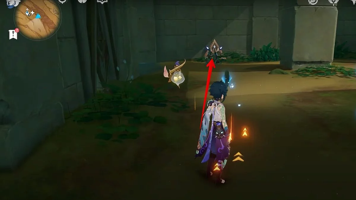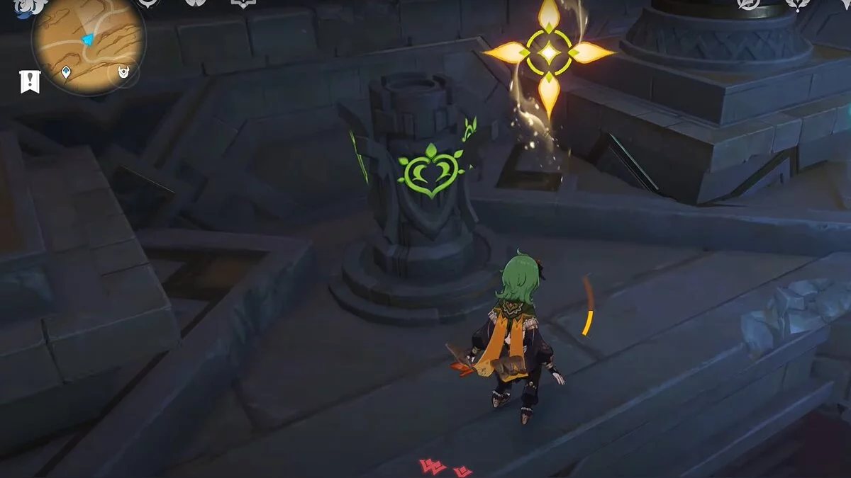 Чтобы открыть сундук, вам нужно активировать три Дендро-тотема. Первый находится слева от входа.
