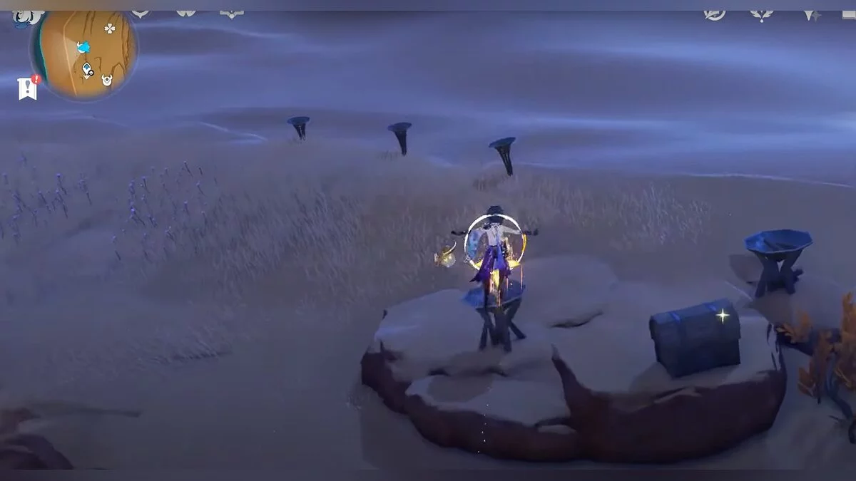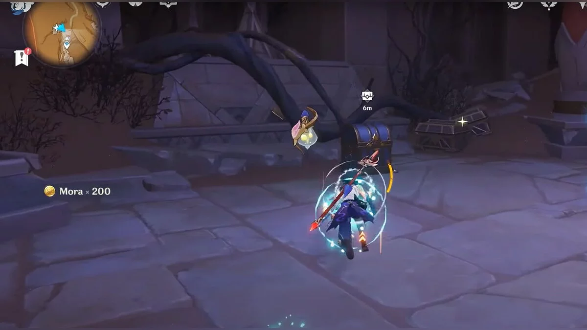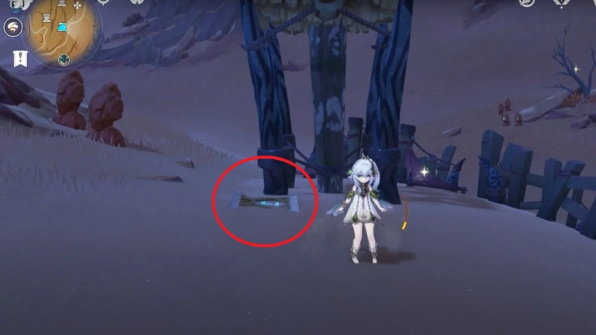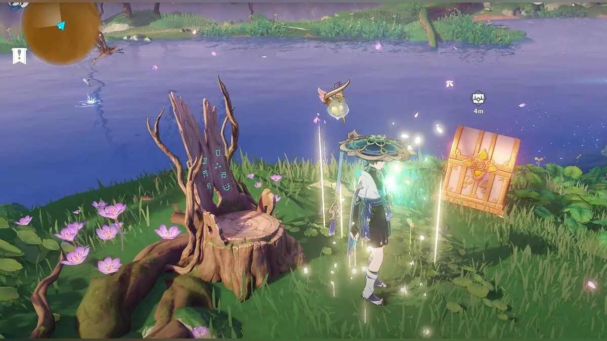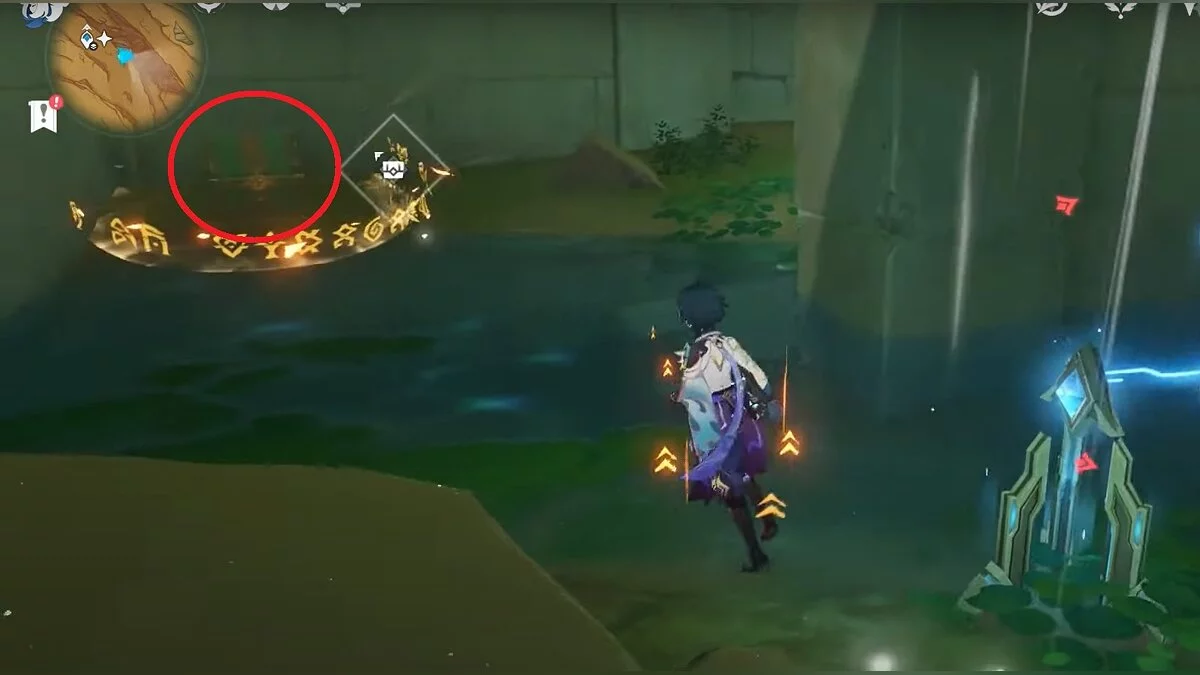 Чтобы открыть сундук, вам нужно активировать три Дендро-тотема. Первый находится слева от входа.
