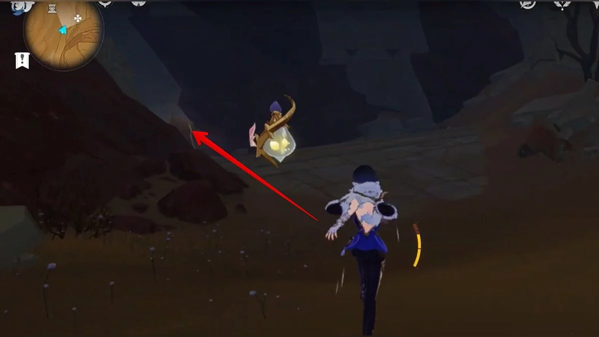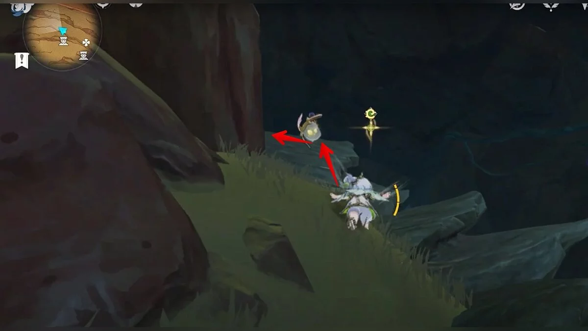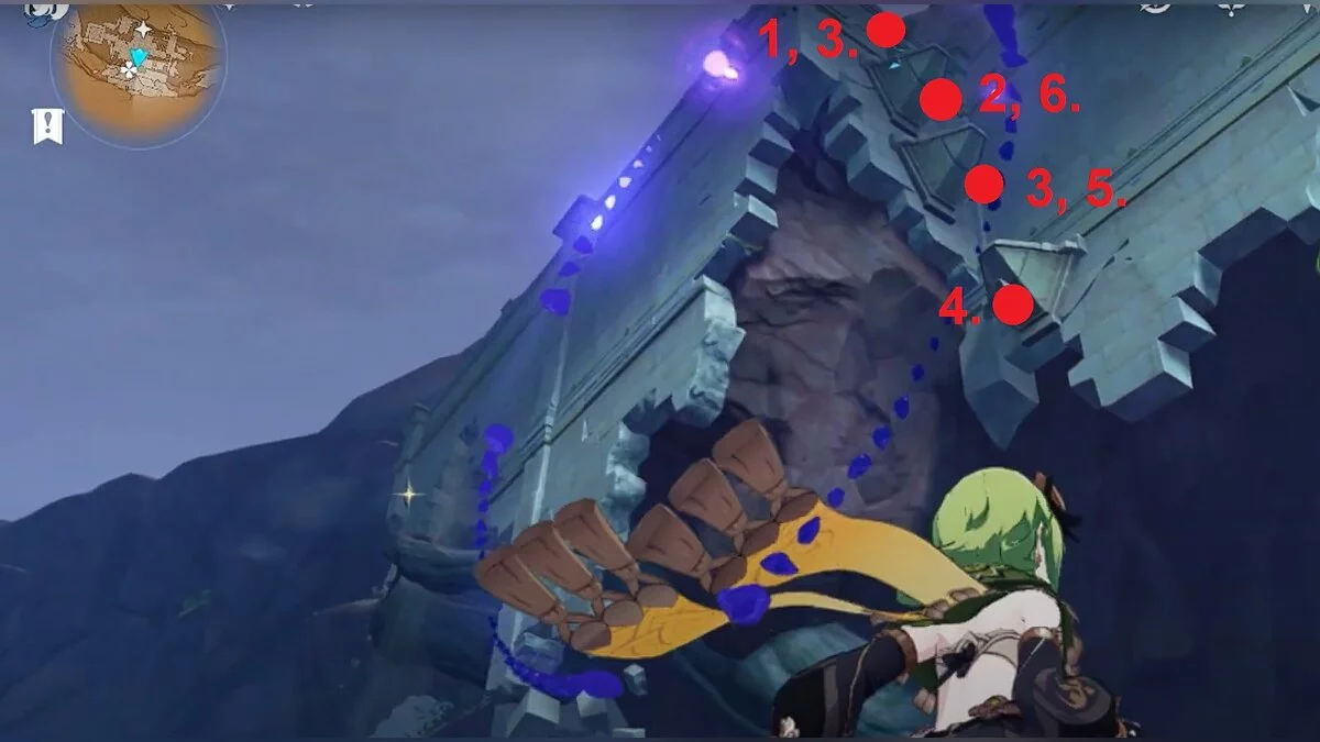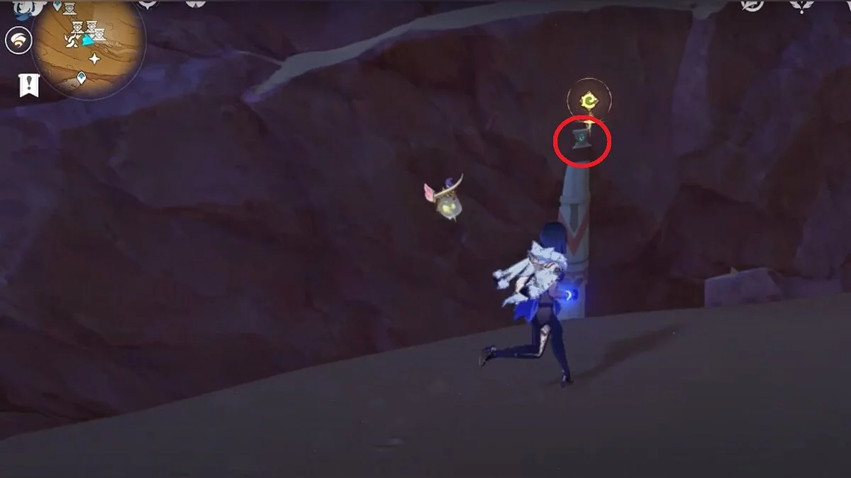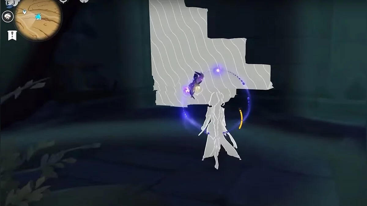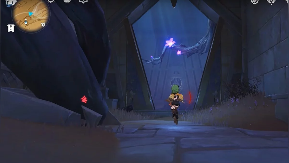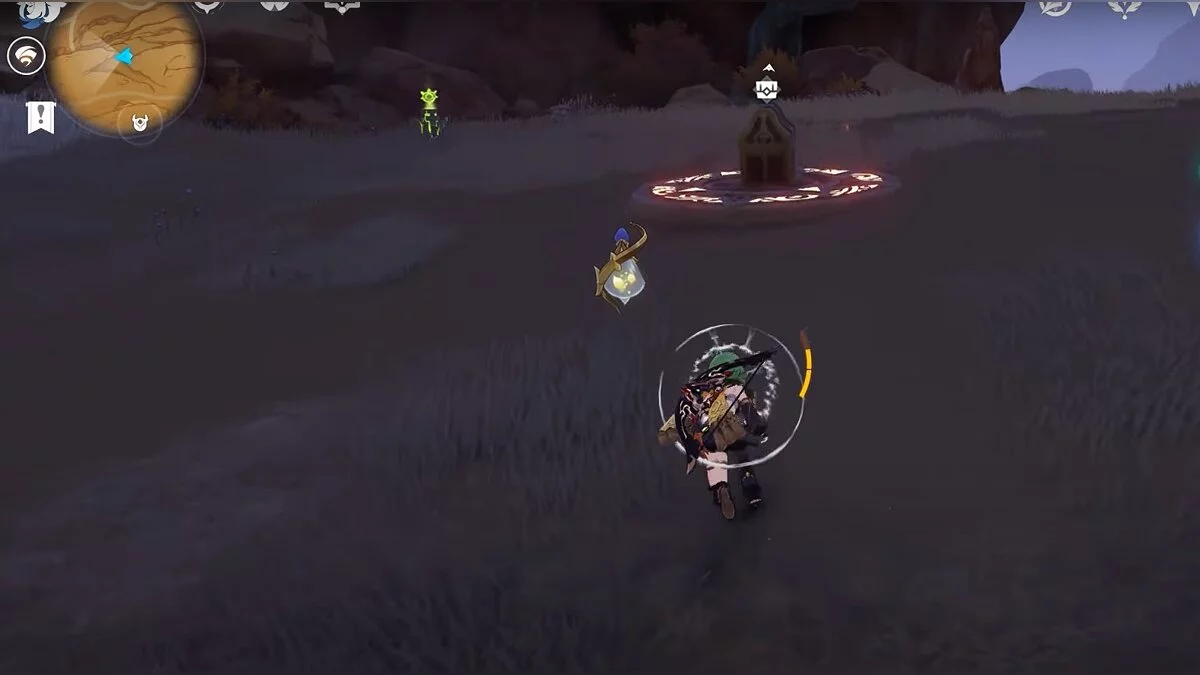 Останется ударить по тотемам Дендро-атакой. Обратите внимание на то, что их не два, а пять. Ещё три штуки находятся на стене. Их местоположение мы указали на скриншотах. Займите позицию на ветке, переключитесь на Дендро-лучника и расстреляйте тотемы.