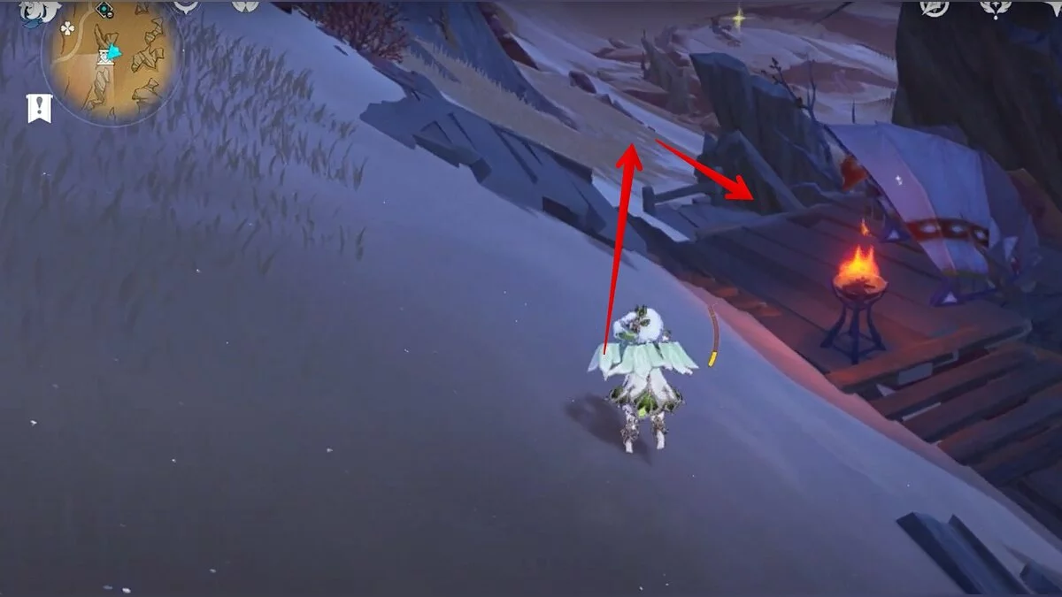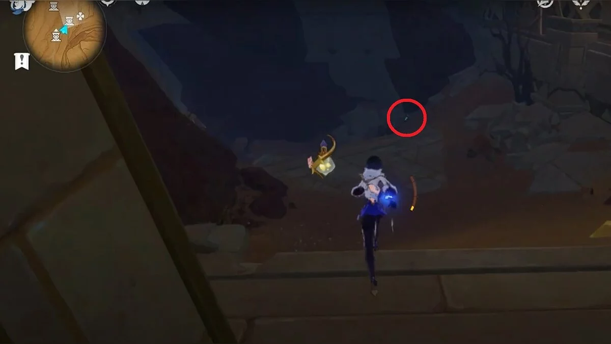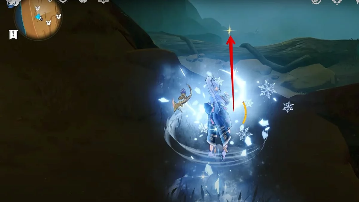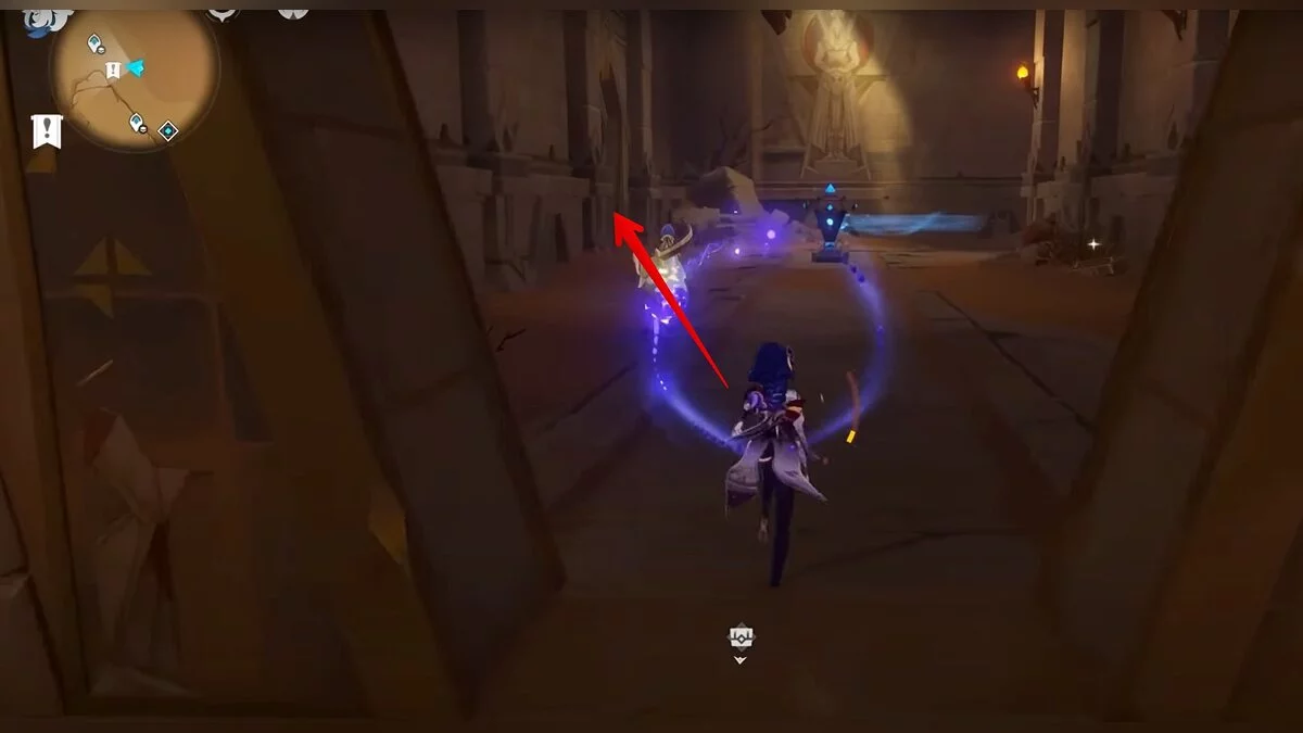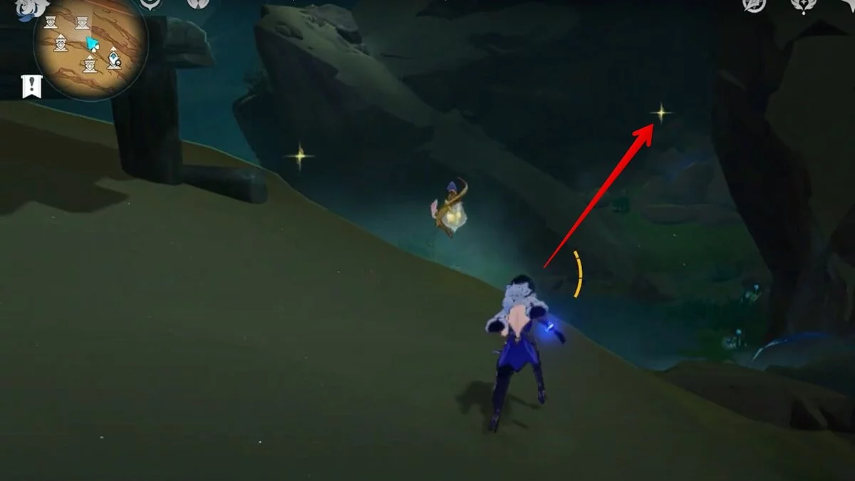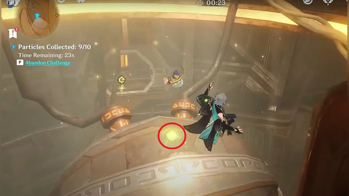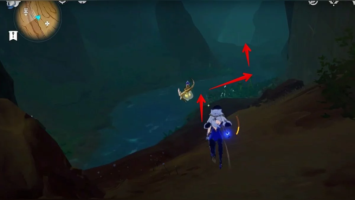 Останется ударить по тотемам Дендро-атакой. Обратите внимание на то, что их не два, а пять. Ещё три штуки находятся на стене. Их местоположение мы указали на скриншотах. Займите позицию на ветке, переключитесь на Дендро-лучника и расстреляйте тотемы.