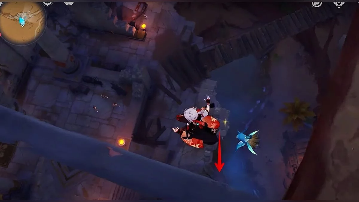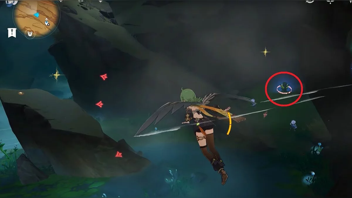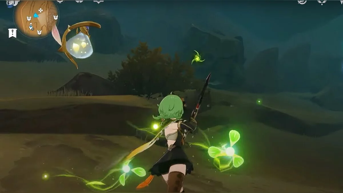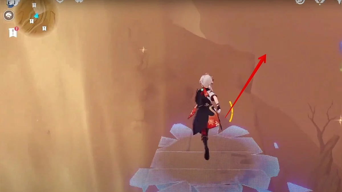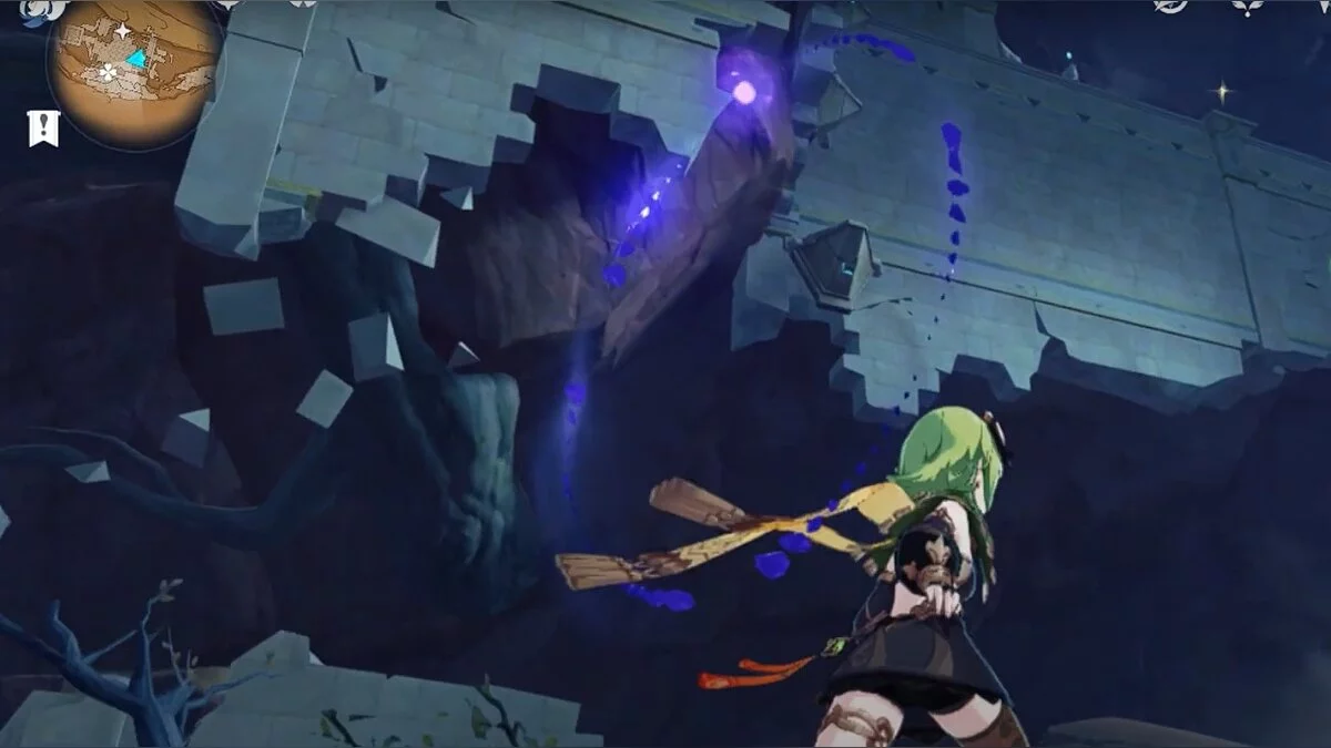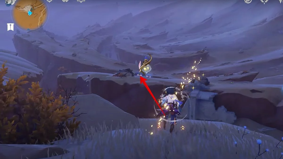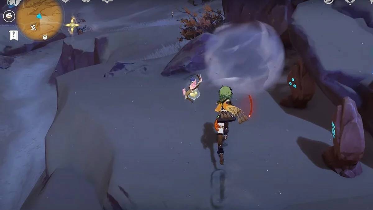Останется ударить по тотемам Дендро-атакой. Обратите внимание на то, что их не два, а пять. Ещё три штуки находятся на стене. Их местоположение мы указали на скриншотах. Займите позицию на ветке, переключитесь на Дендро-лучника и расстреляйте тотемы.