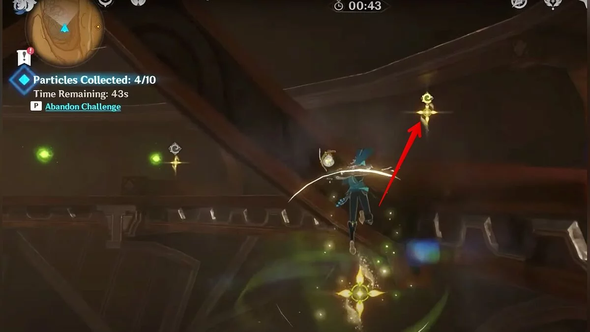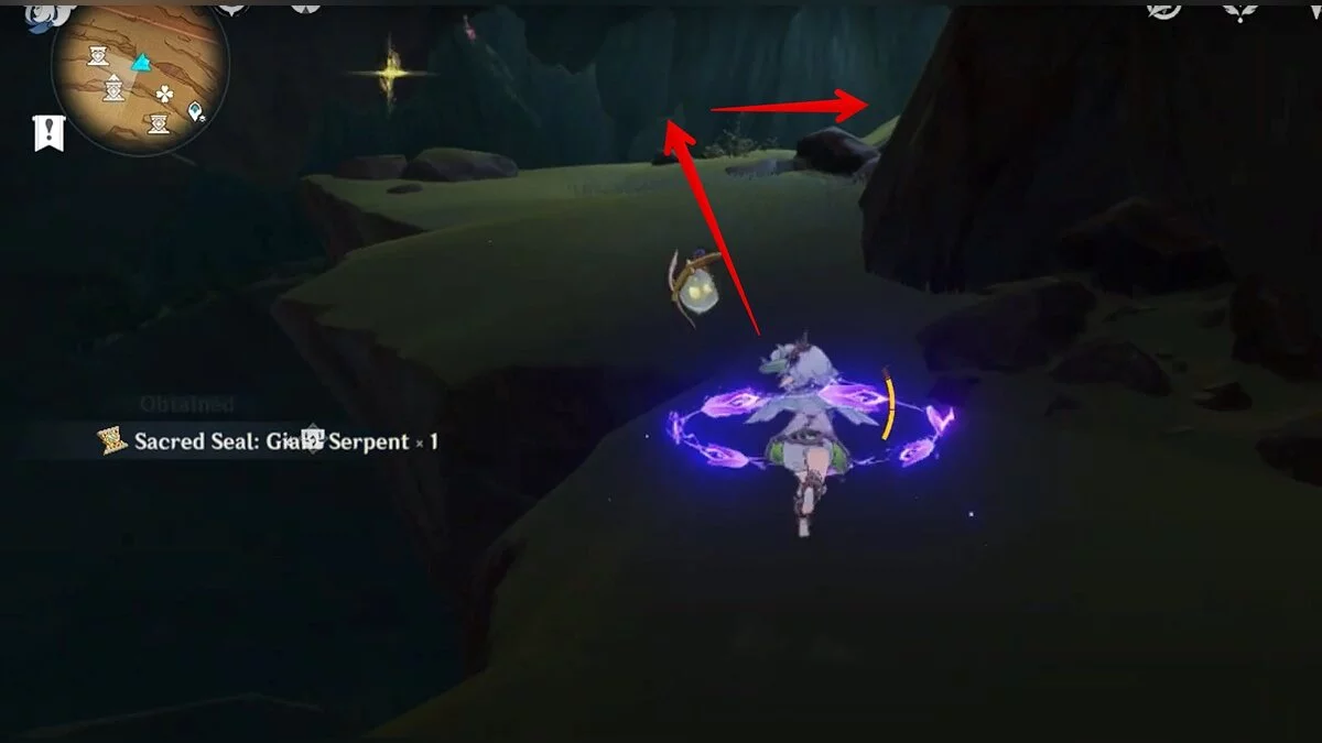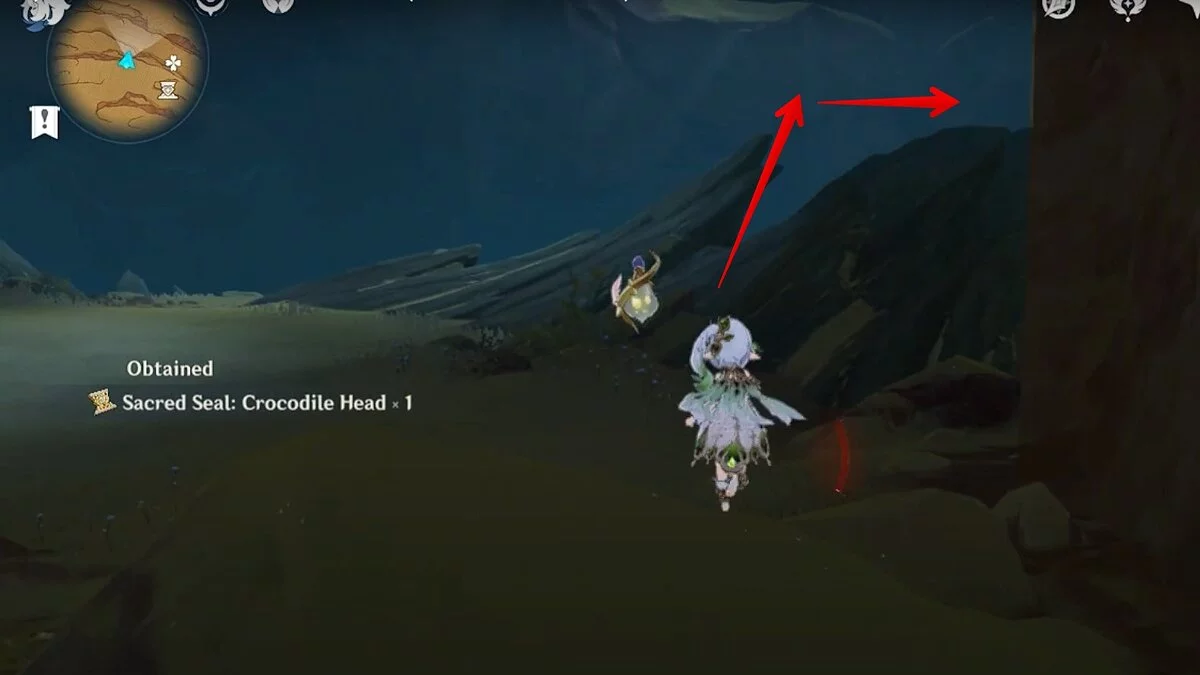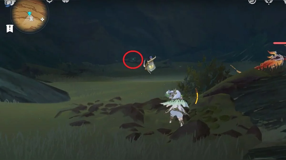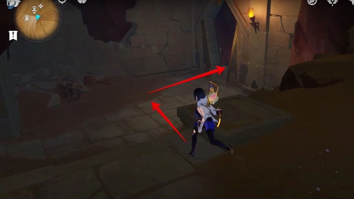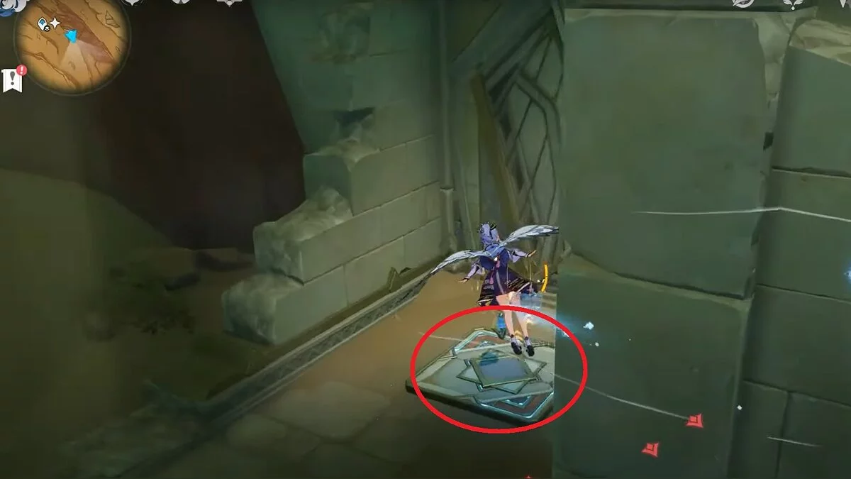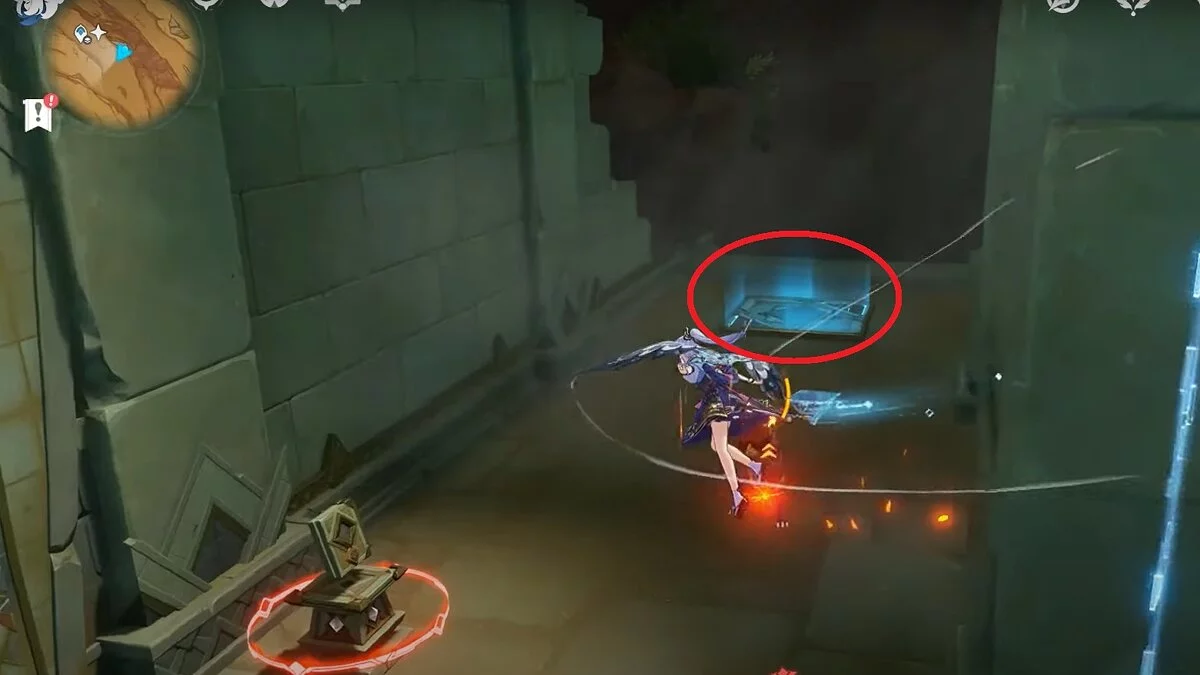 Останется ударить по тотемам Дендро-атакой. Обратите внимание на то, что их не два, а пять. Ещё три штуки находятся на стене. Их местоположение мы указали на скриншотах. Займите позицию на ветке, переключитесь на Дендро-лучника и расстреляйте тотемы.