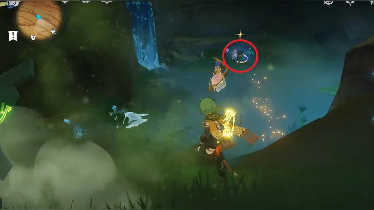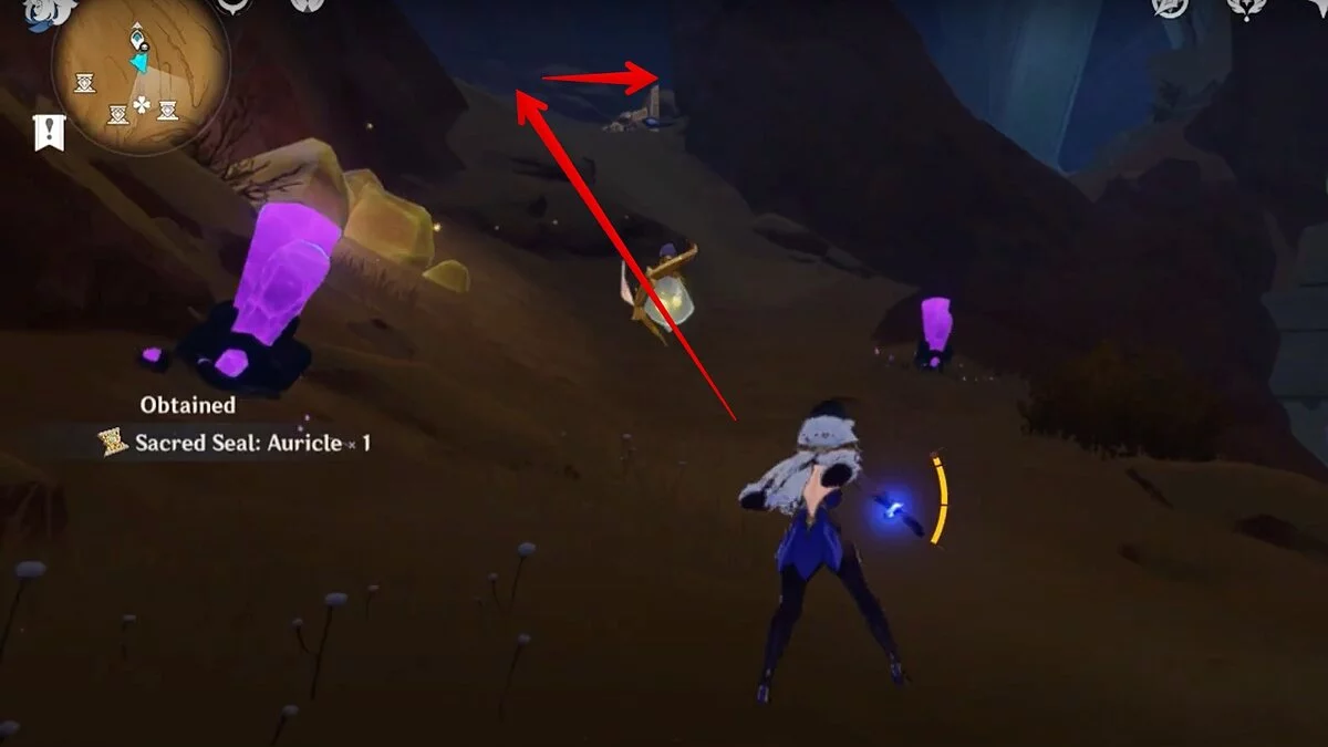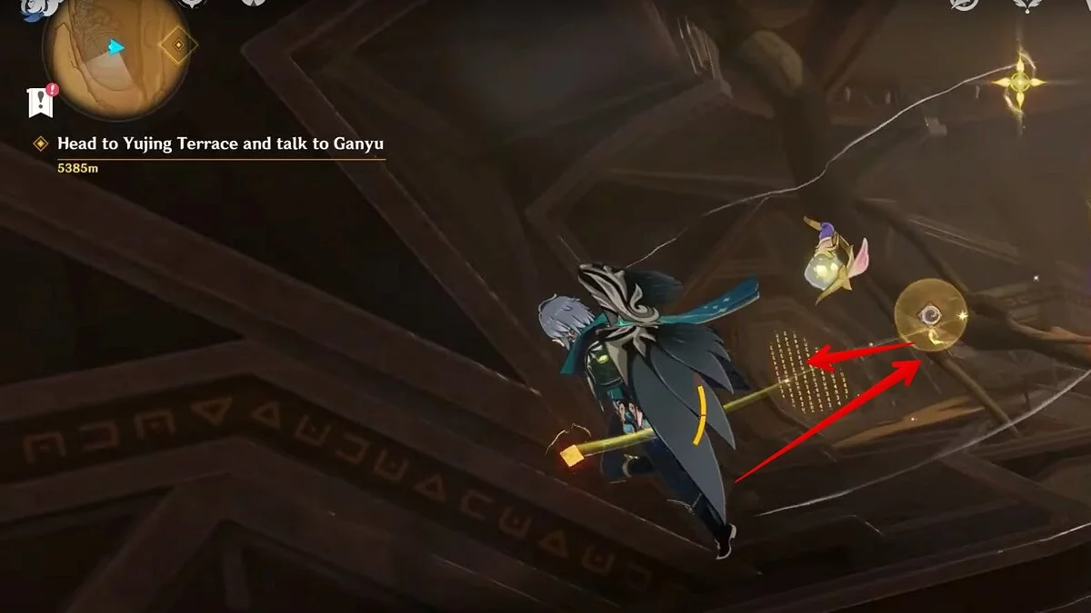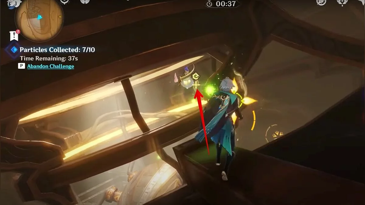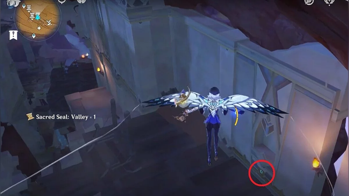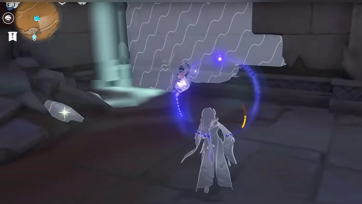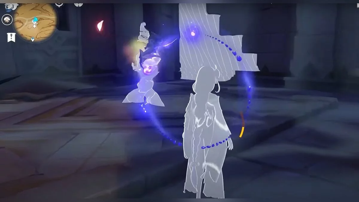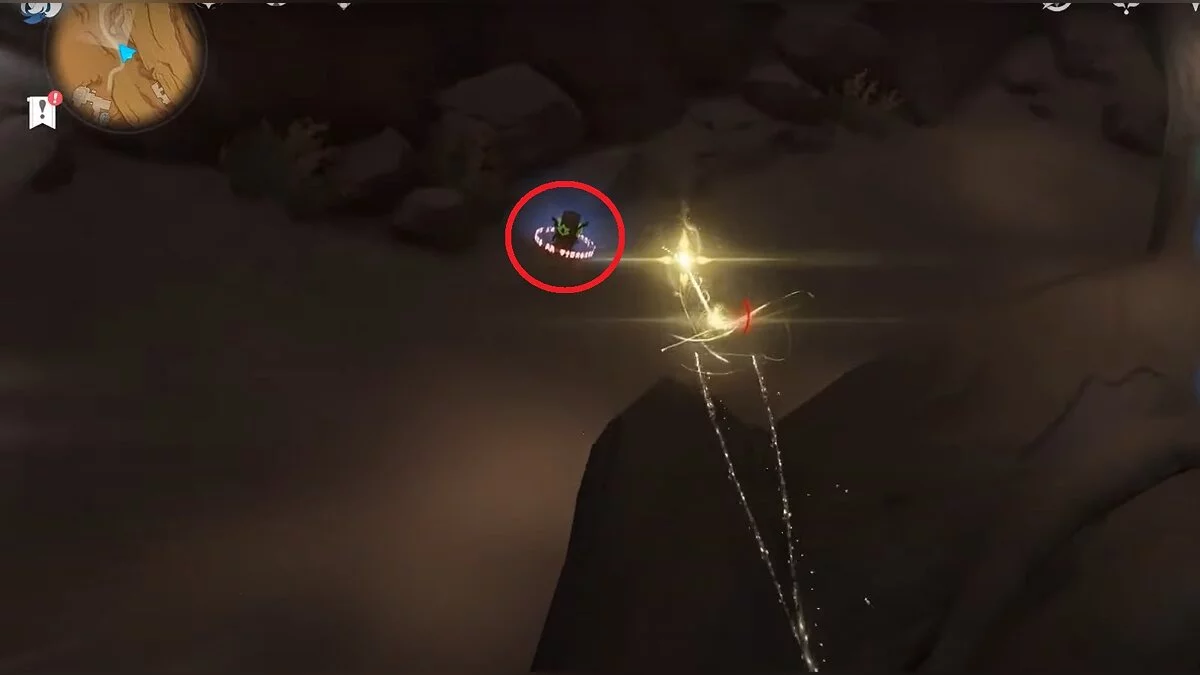 Останется ударить по тотемам Дендро-атакой. Обратите внимание на то, что их не два, а пять. Ещё три штуки находятся на стене. Их местоположение мы указали на скриншотах. Займите позицию на ветке, переключитесь на Дендро-лучника и расстреляйте тотемы.