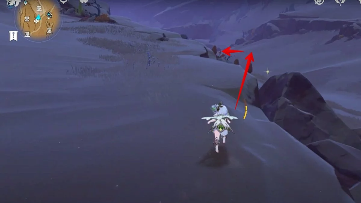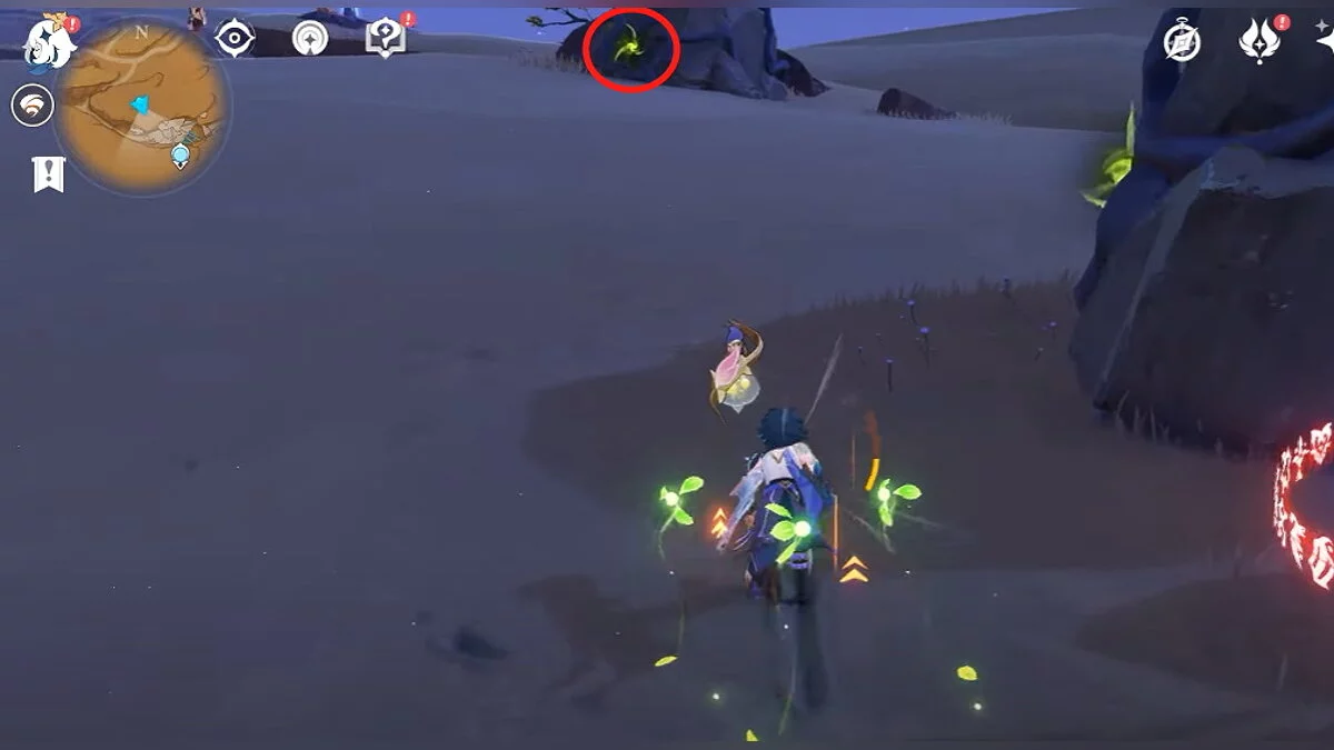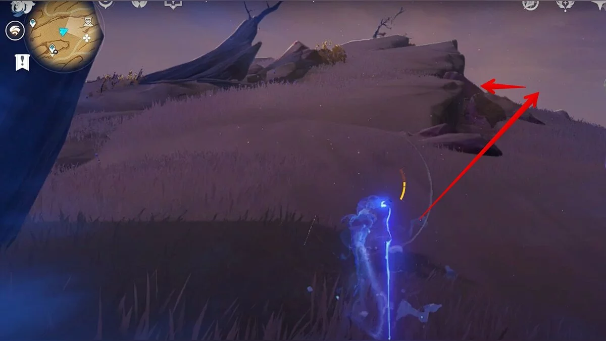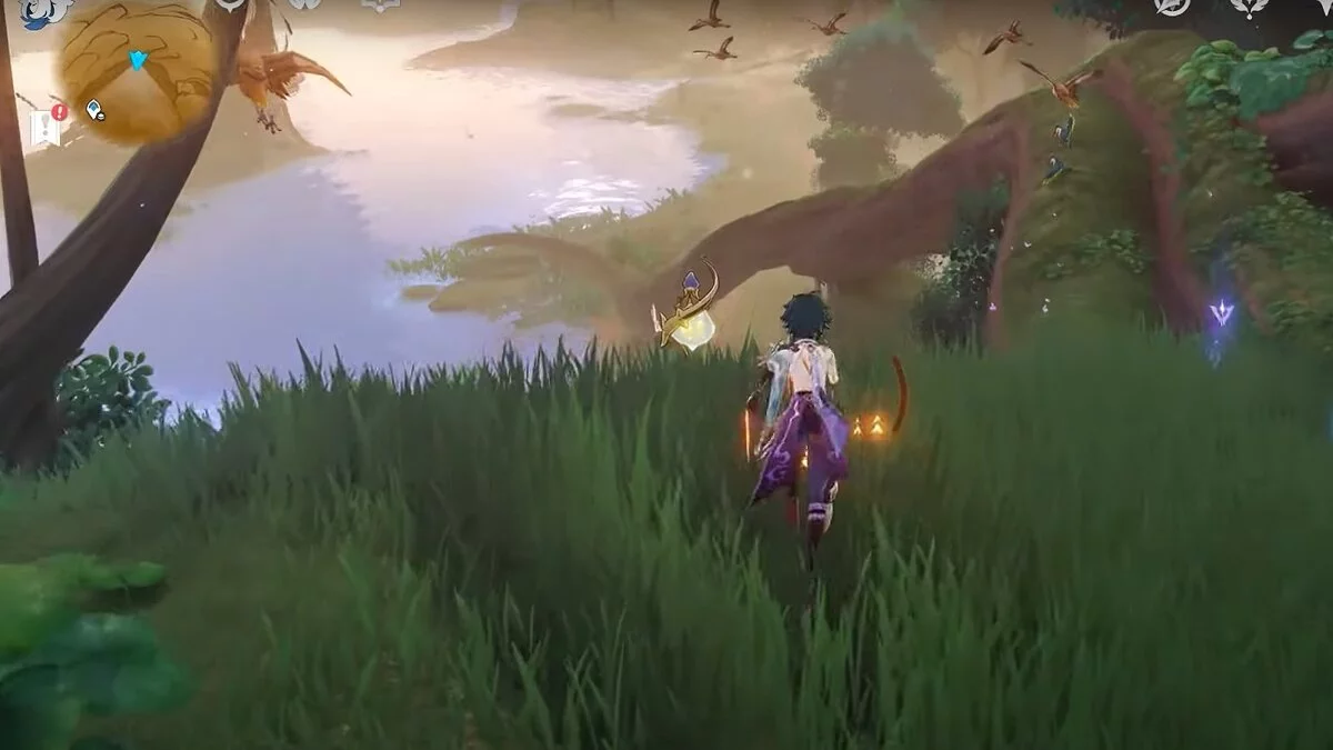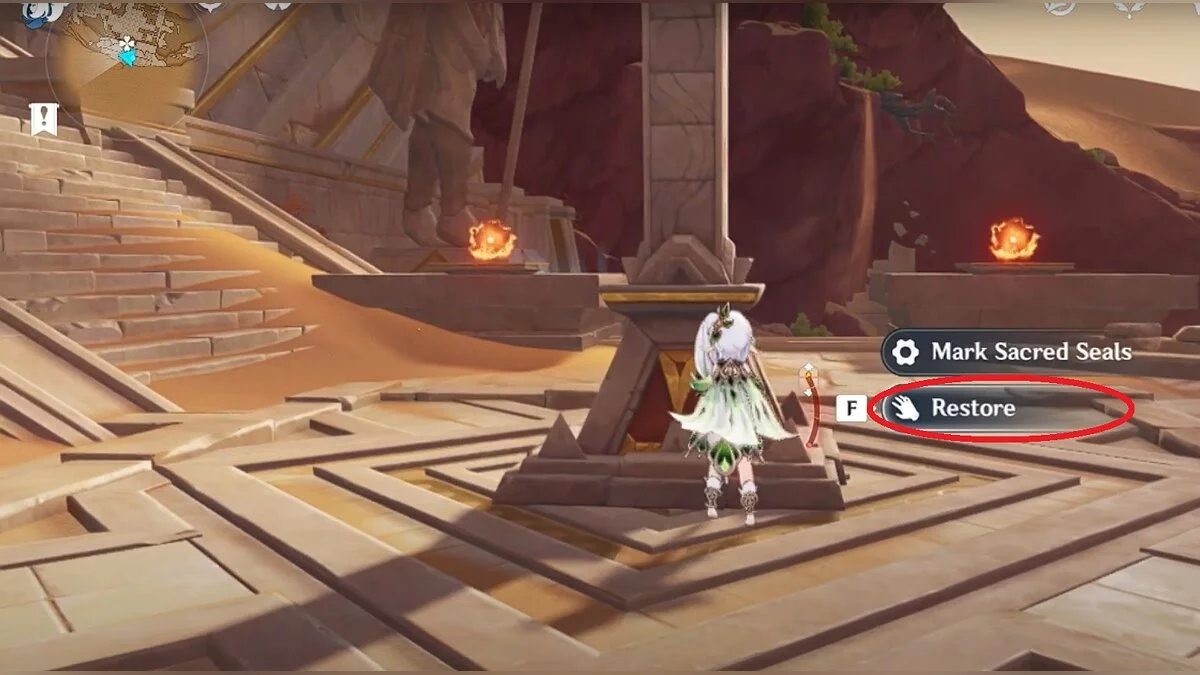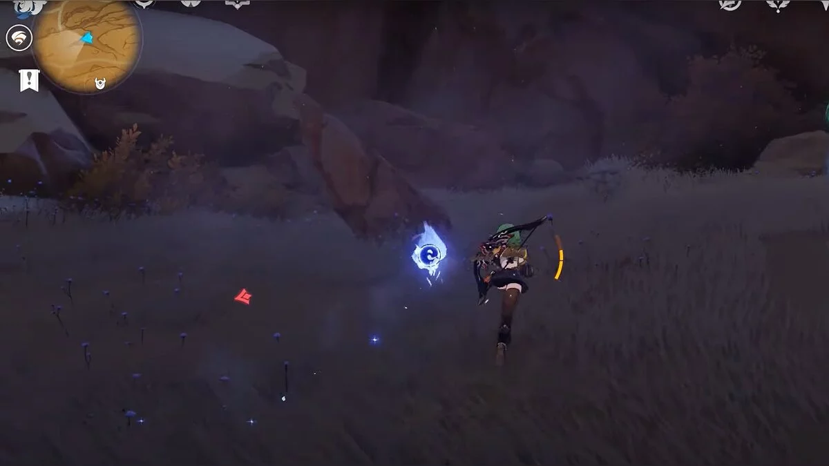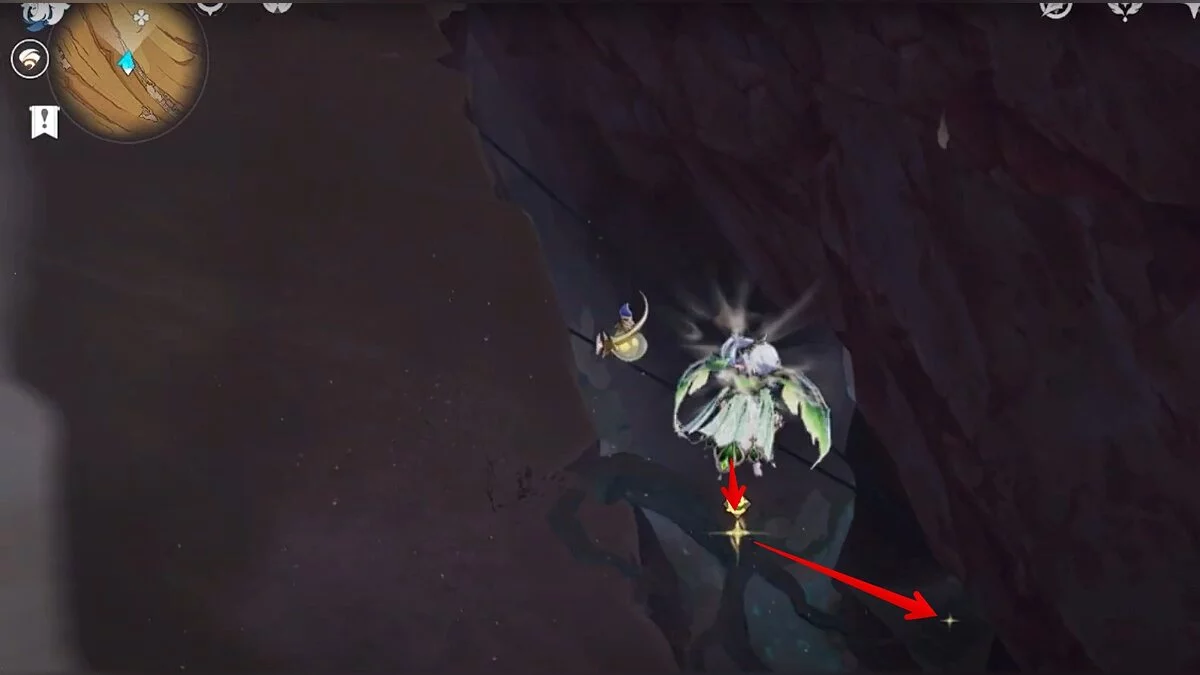 Останется ударить по тотемам Дендро-атакой. Обратите внимание на то, что их не два, а пять. Ещё три штуки находятся на стене. Их местоположение мы указали на скриншотах. Займите позицию на ветке, переключитесь на Дендро-лучника и расстреляйте тотемы.