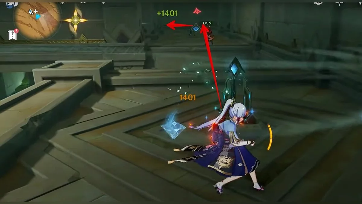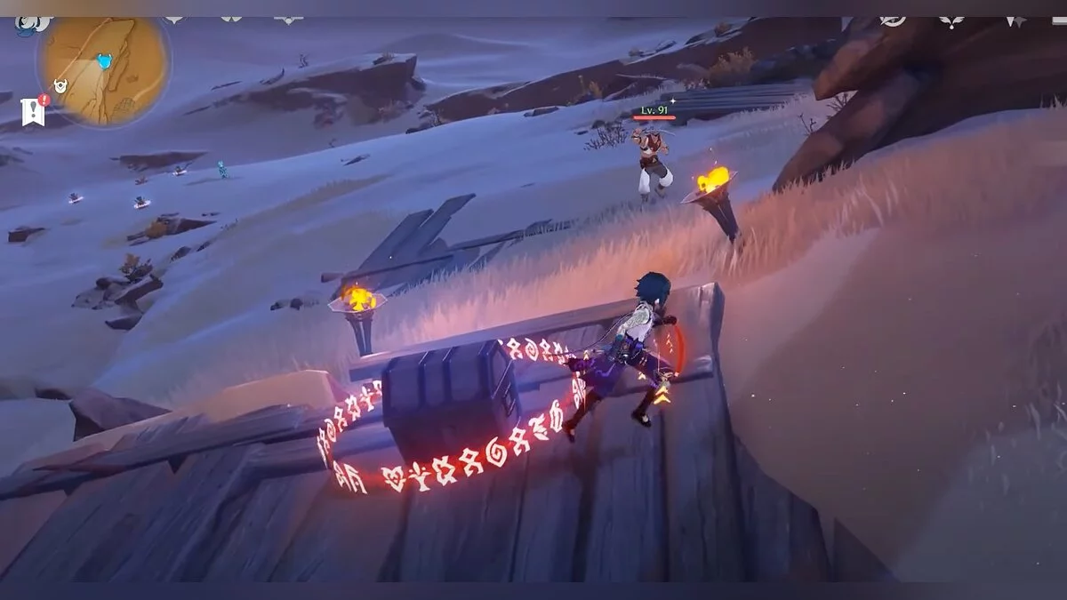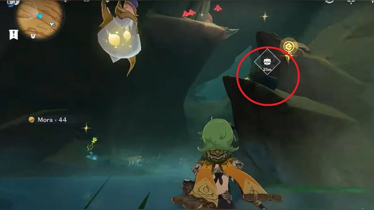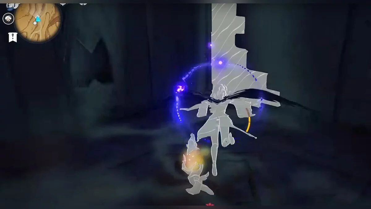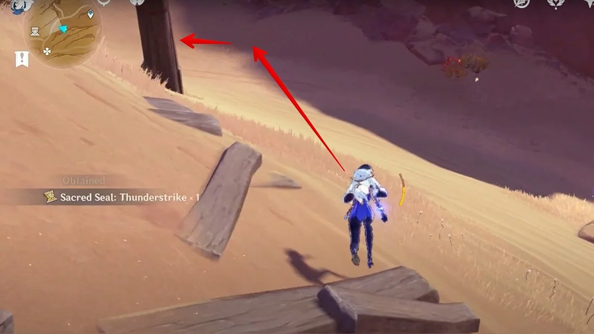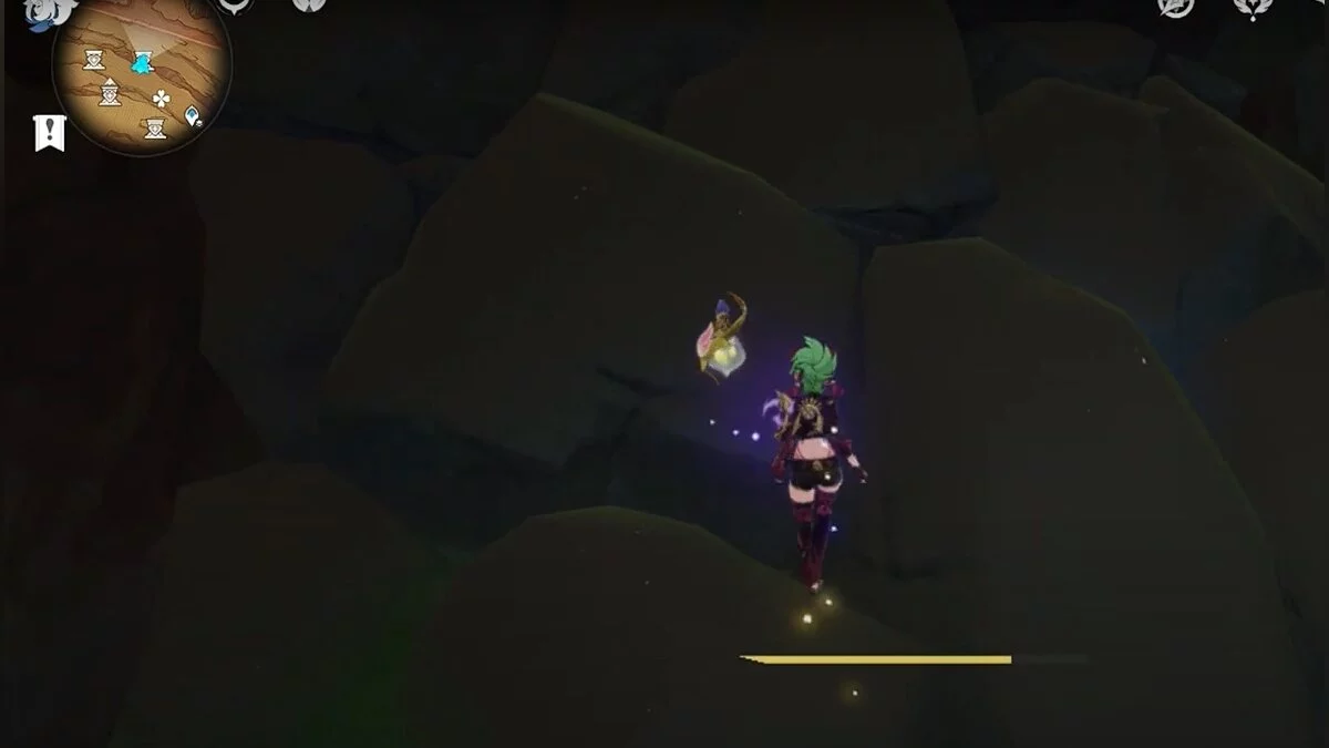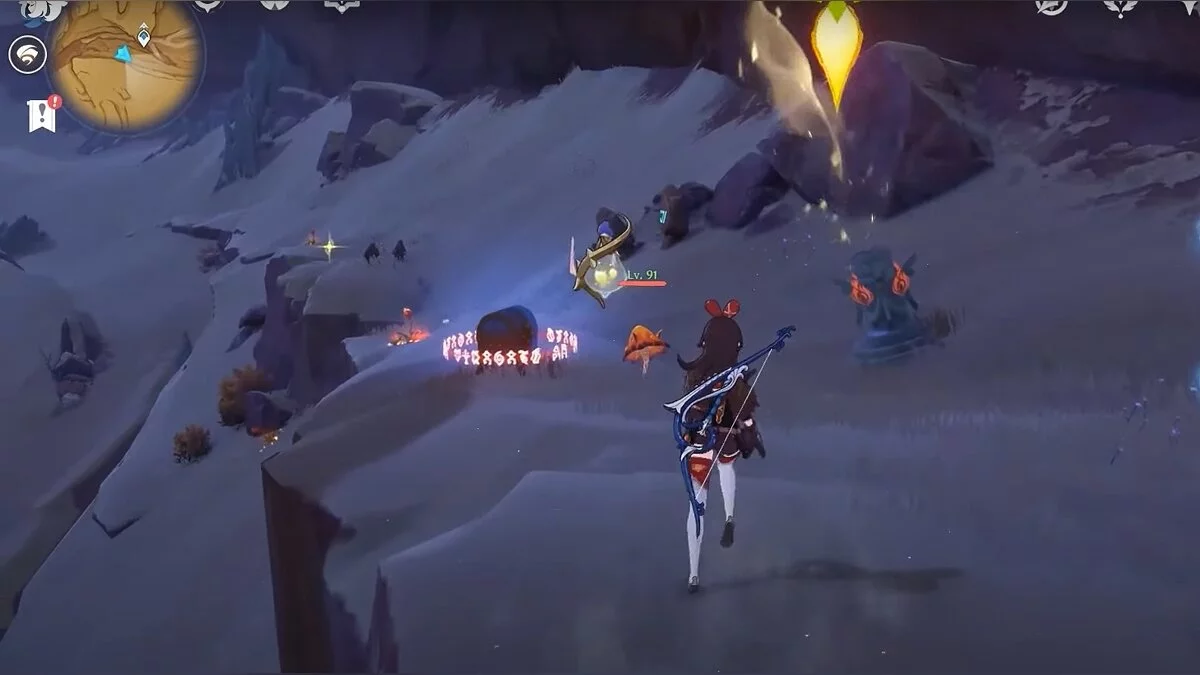 Останется ударить по тотемам Дендро-атакой. Обратите внимание на то, что их не два, а пять. Ещё три штуки находятся на стене. Их местоположение мы указали на скриншотах. Займите позицию на ветке, переключитесь на Дендро-лучника и расстреляйте тотемы.