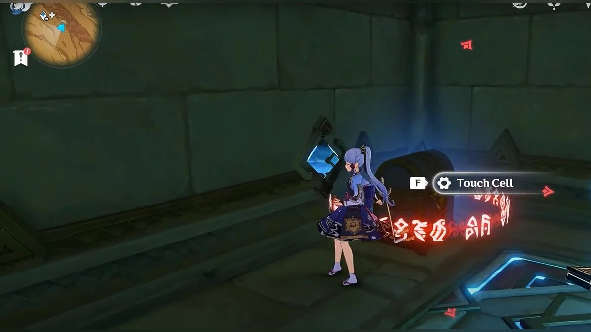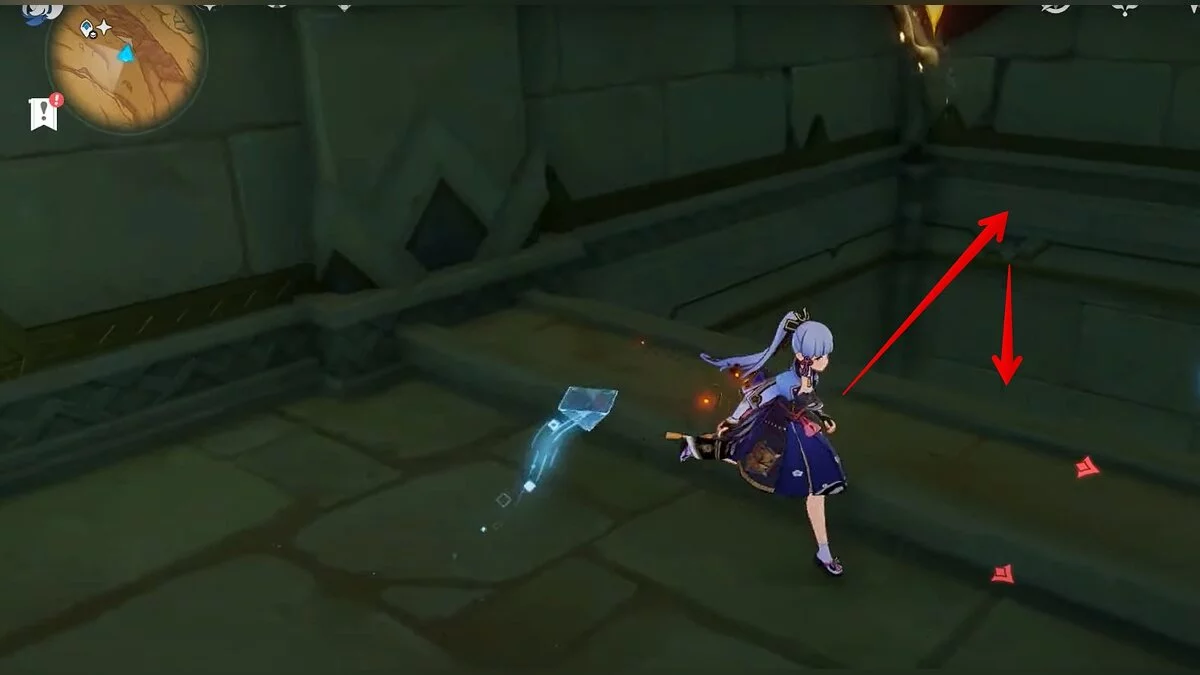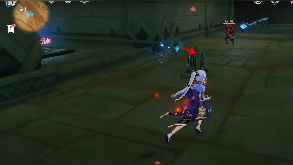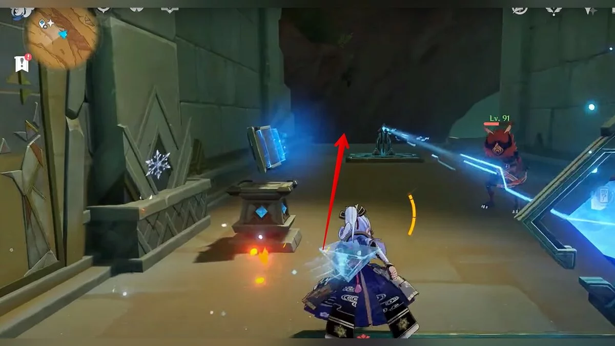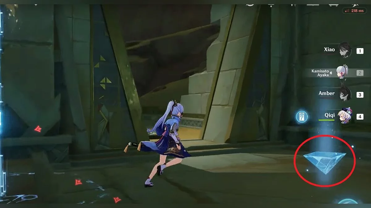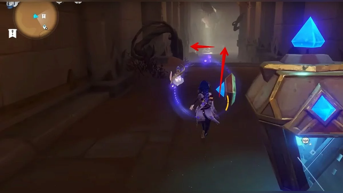 Бегите вдоль голубой линии до самого конца, а затем поворачивайте налево. Взаимодействуйте с кристаллом.