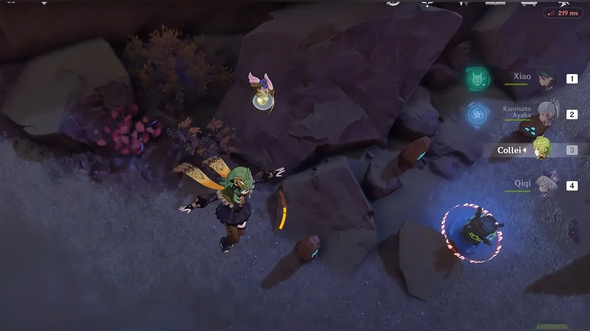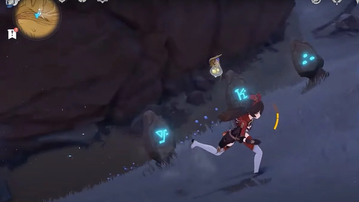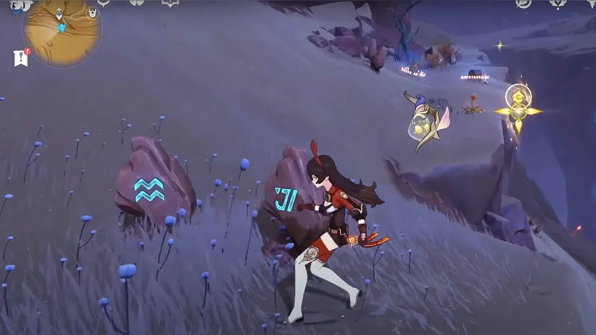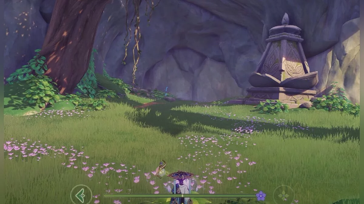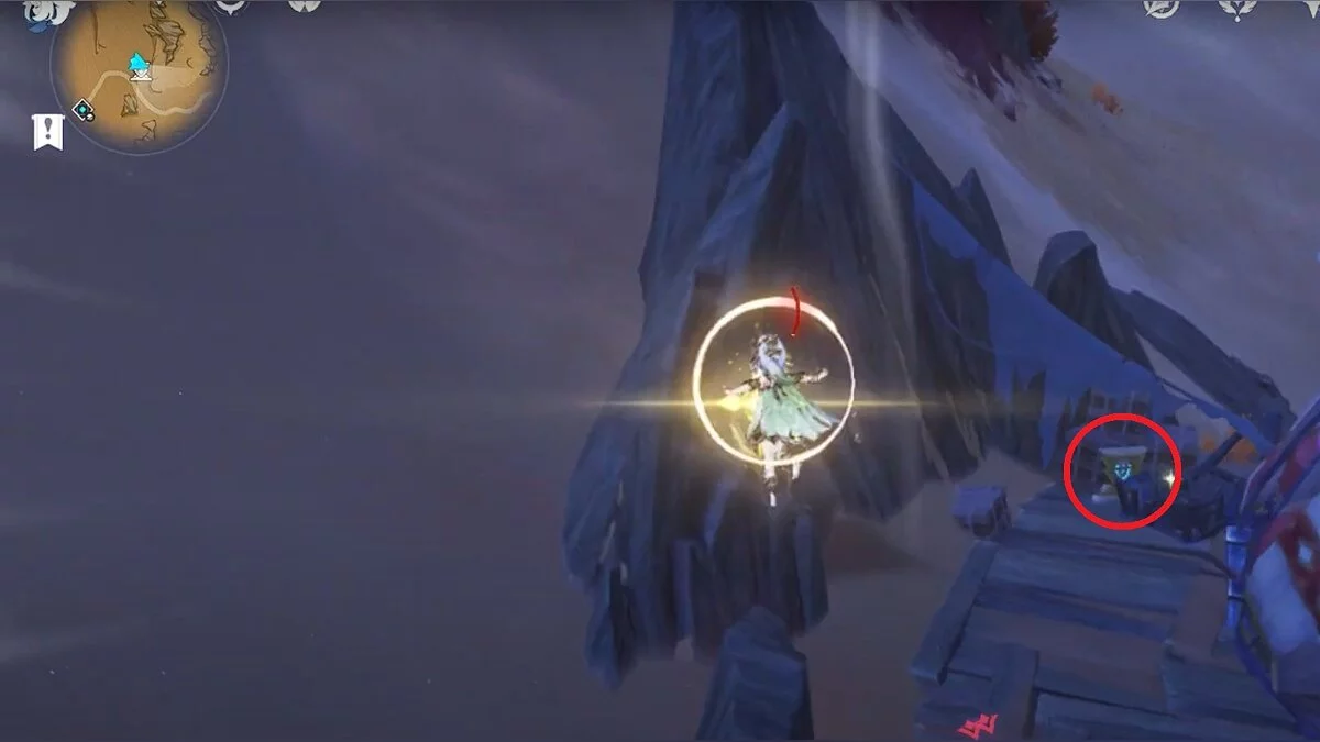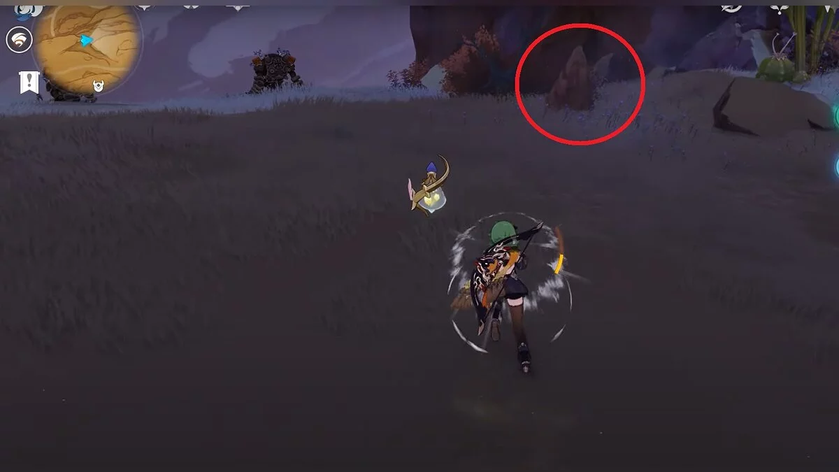 Спускайтесь со скалы вниз. Вы увидите дендро-тотем и ещё три камня.