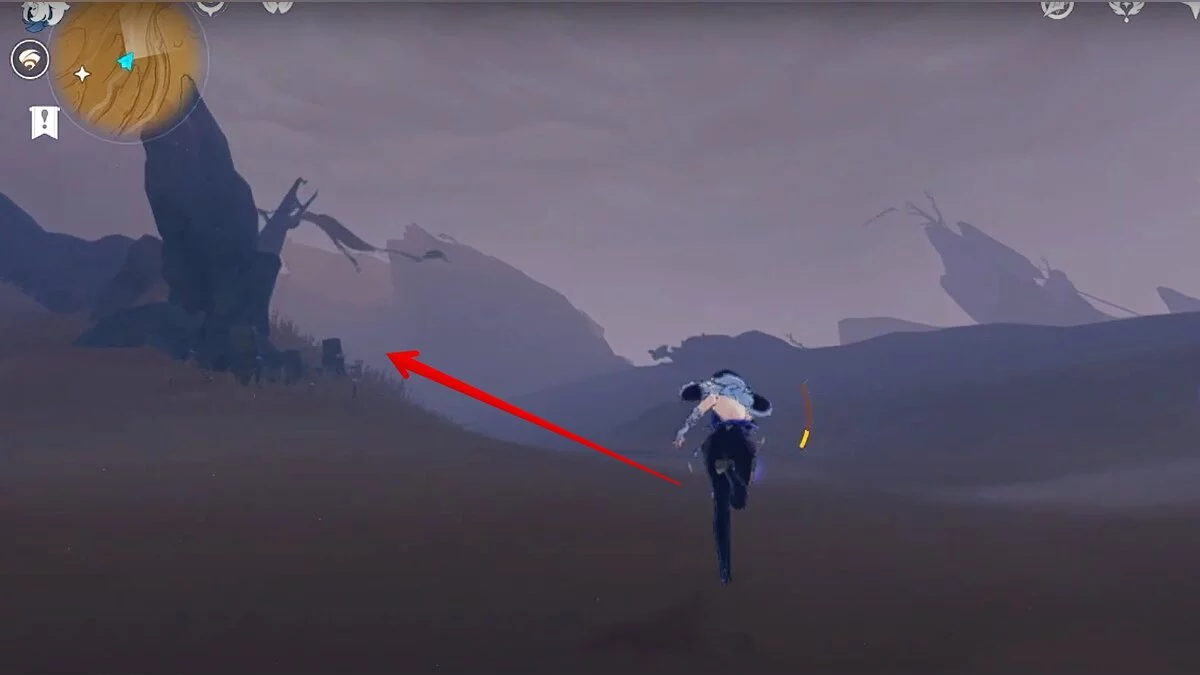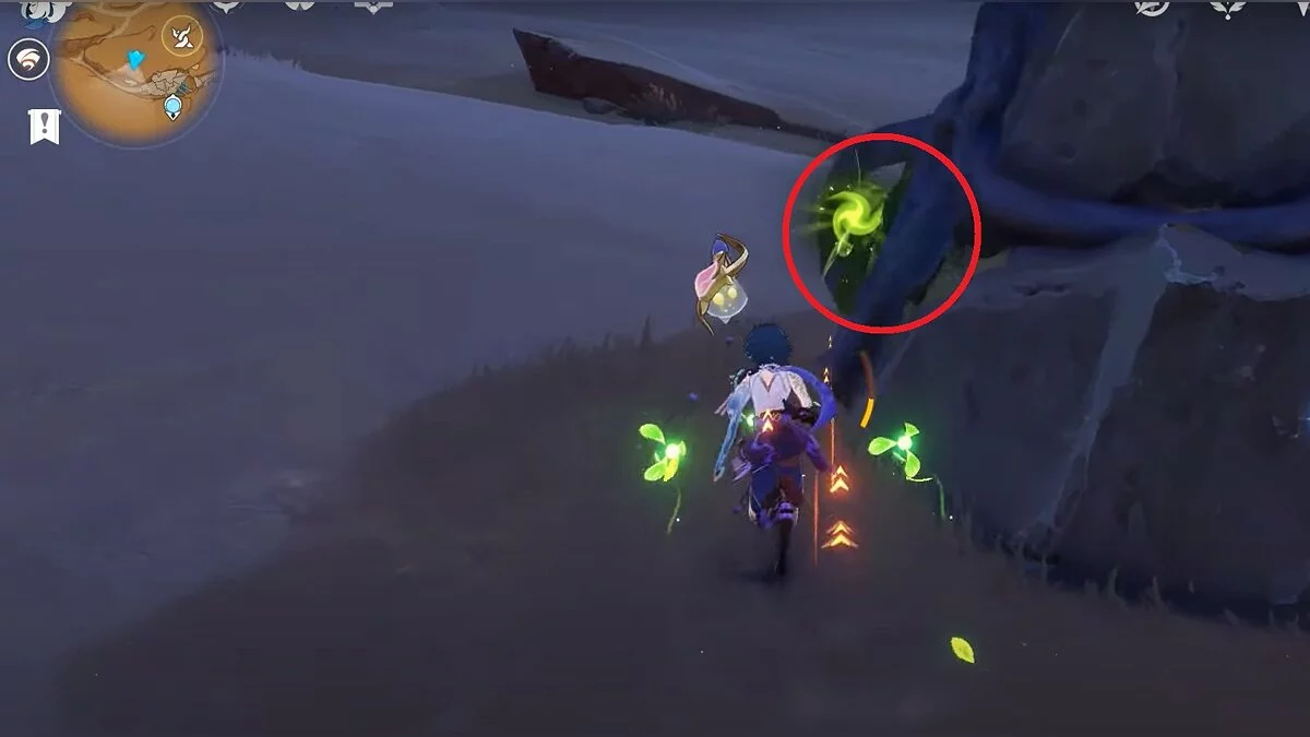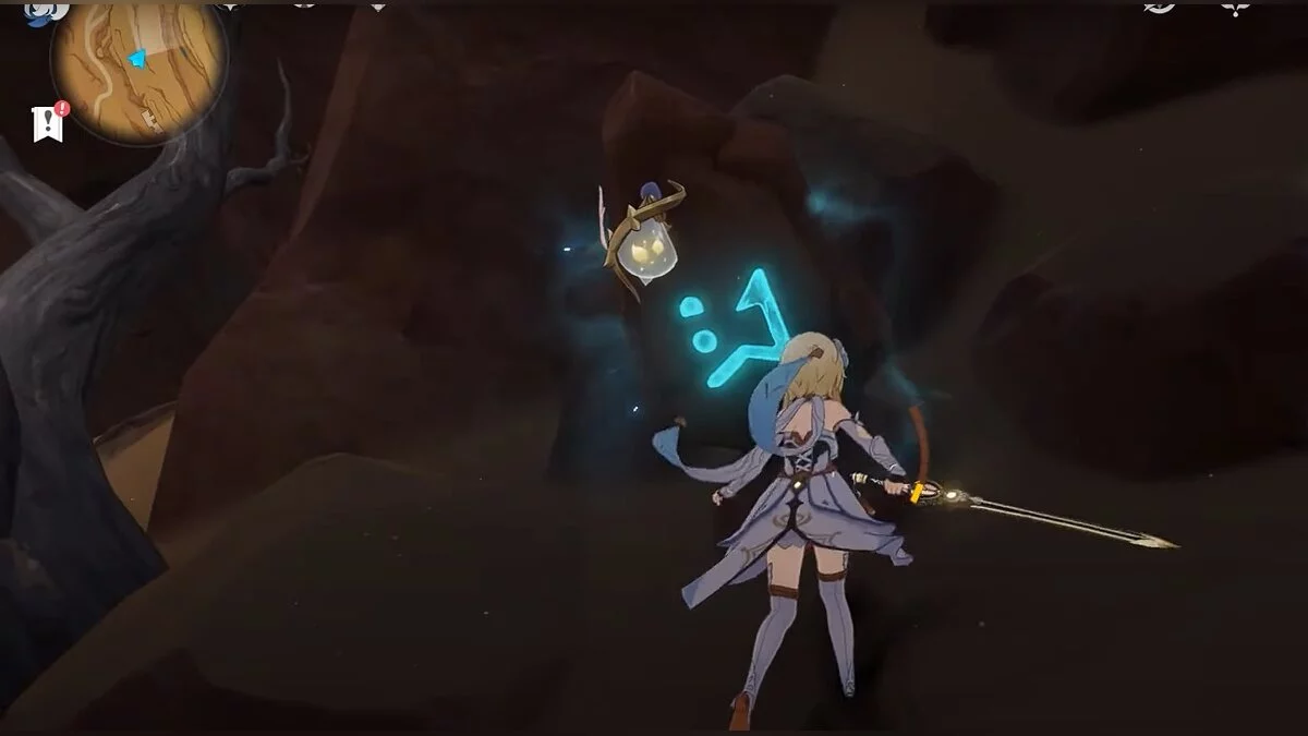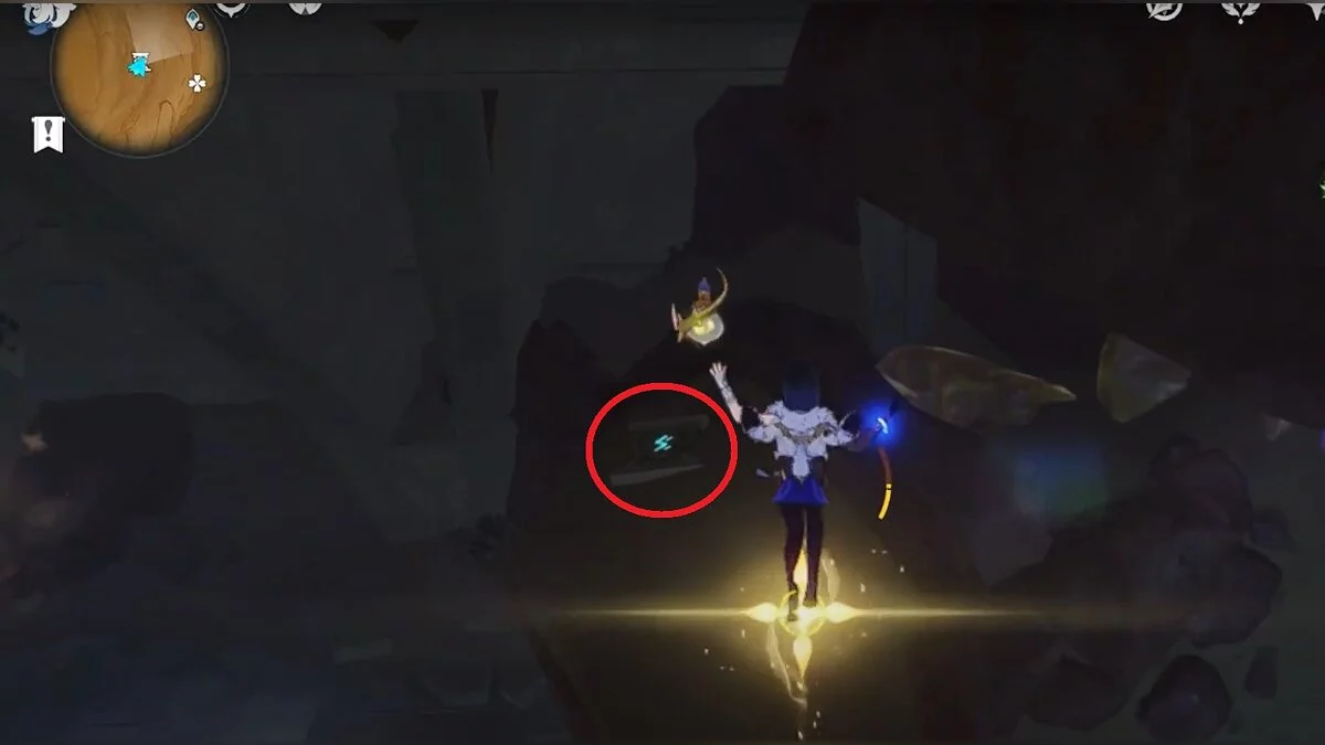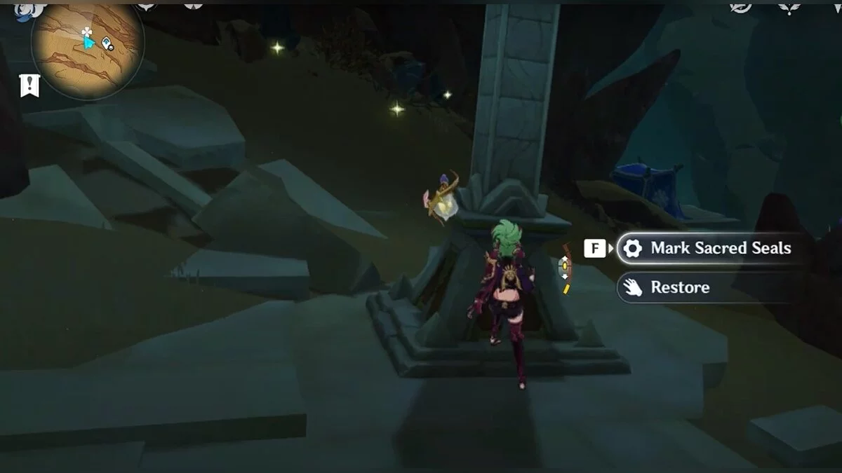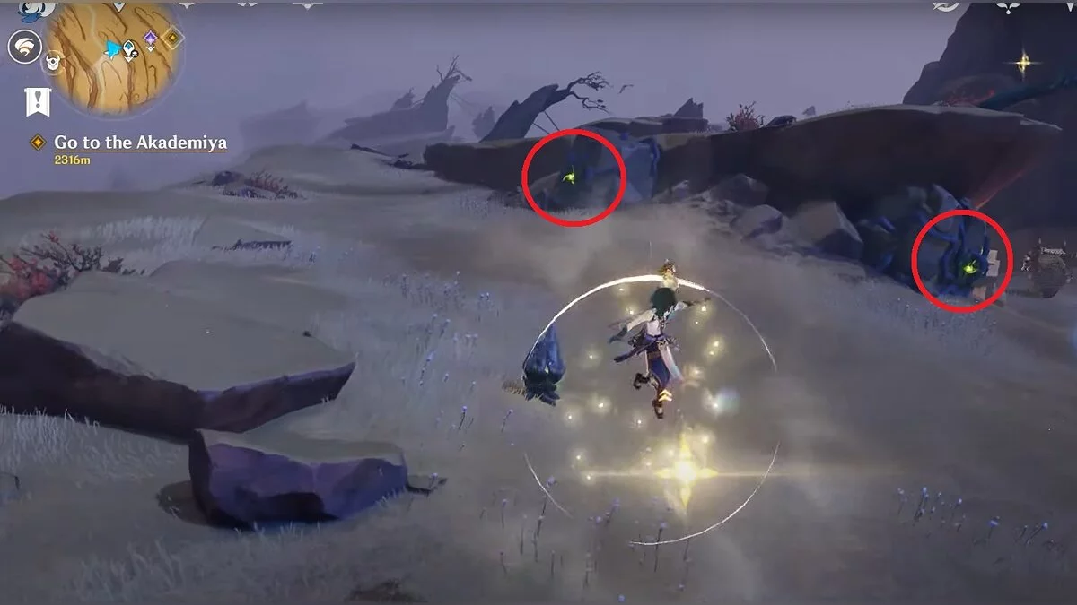 Спускайтесь со скалы вниз. Вы увидите дендро-тотем и ещё три камня.