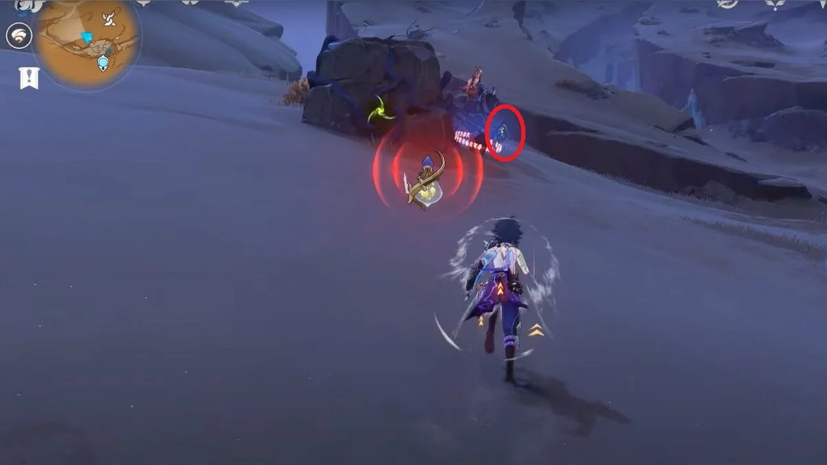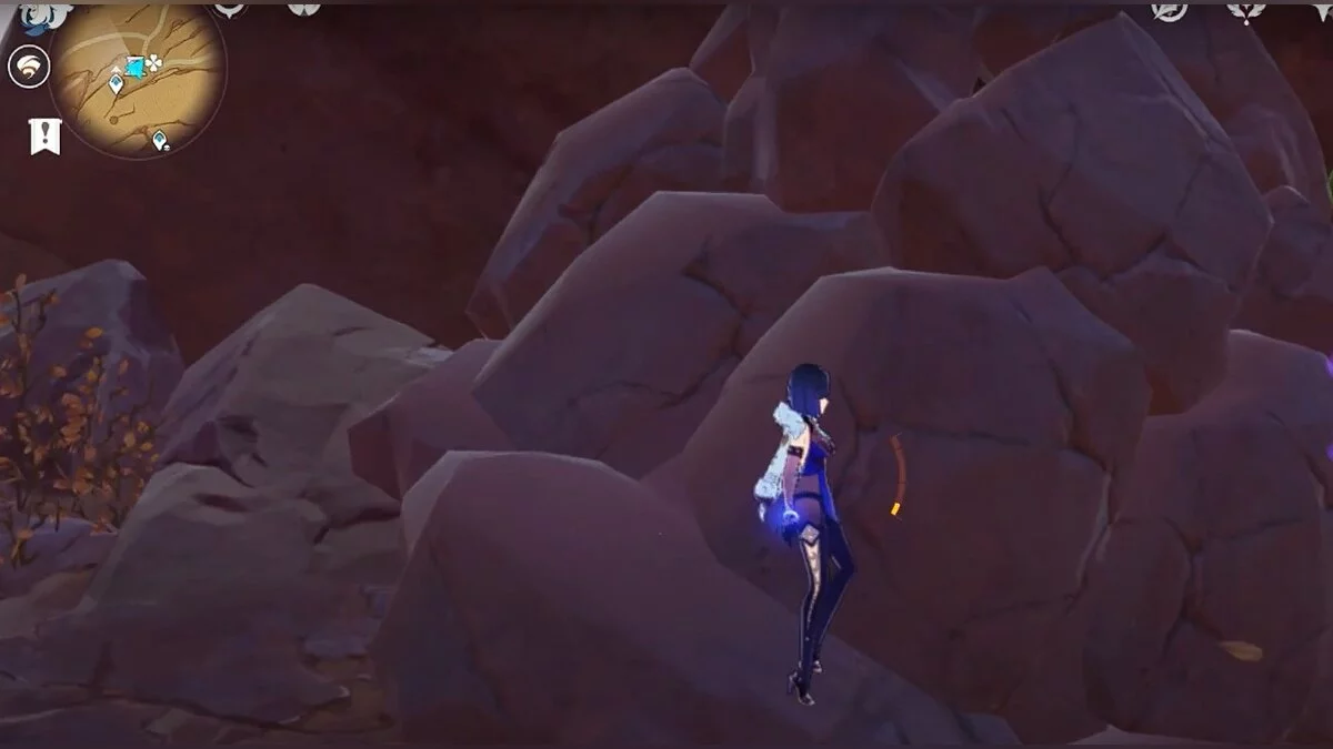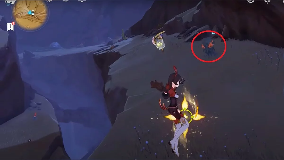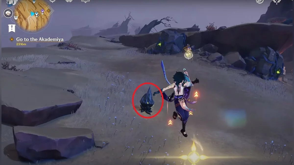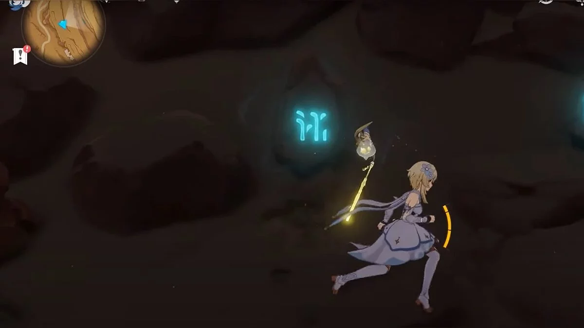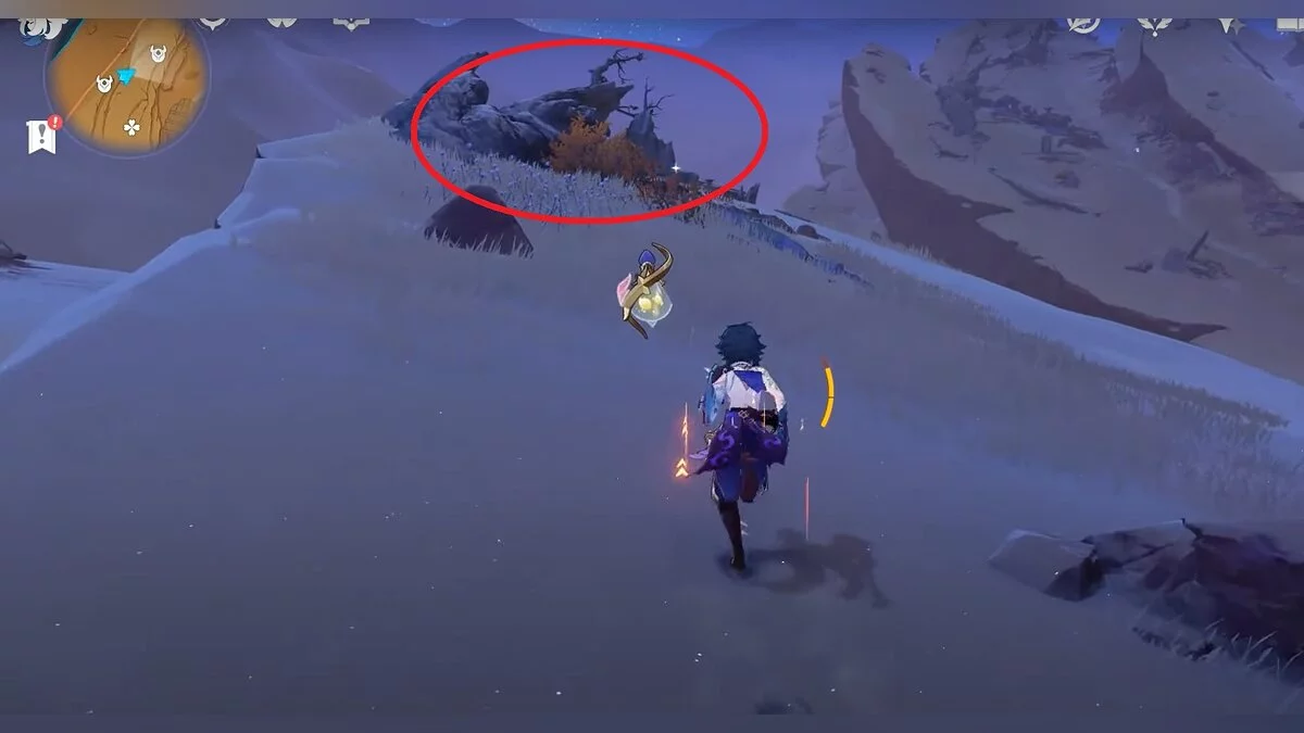 Спускайтесь со скалы вниз. Вы увидите дендро-тотем и ещё три камня.