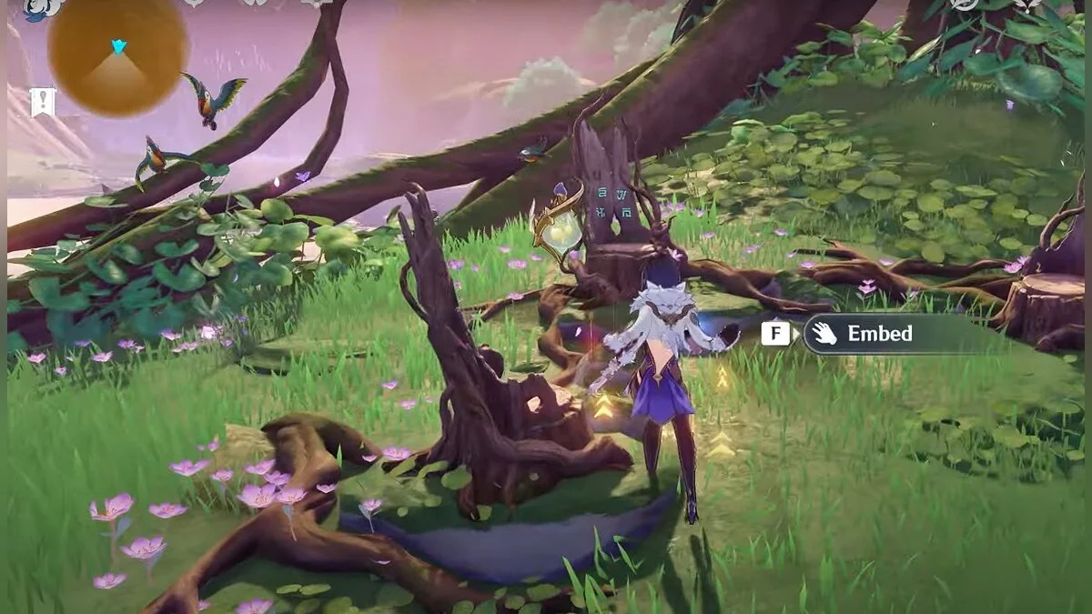 Взаимодействуйте с цветком снова. Когда он прилетит на место, активируйте воспоминание. Паузу нужно поставить в самом начале.