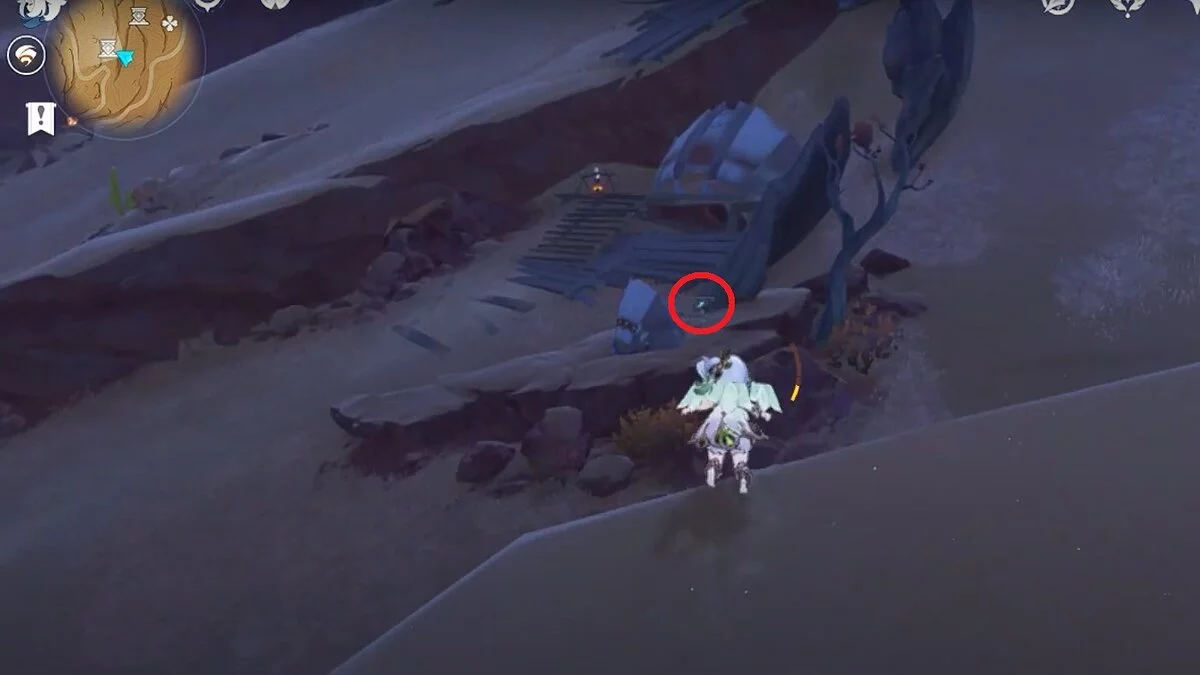 Поразите точку, которая указана на скриншоте. Если вы всё сделали верно, рядом появится сундук.