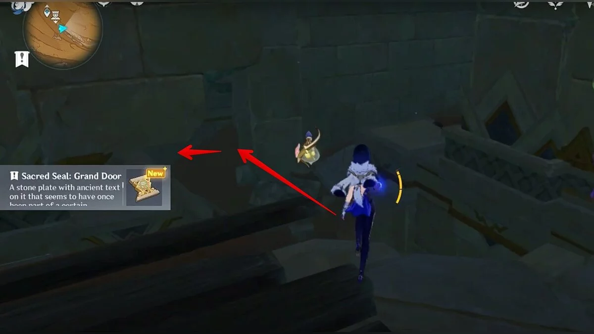 Он разблокируется после того, как вы решите простенькую загадку. Просто стреляйте по обелискам из лука или бейте их мечом, пока не появятся нужные символы.
