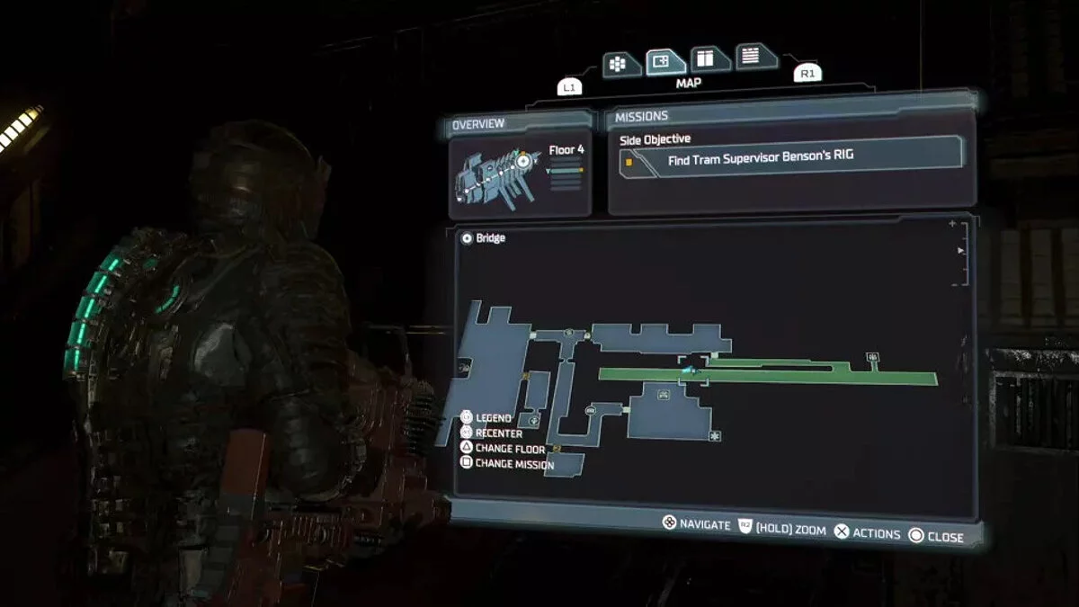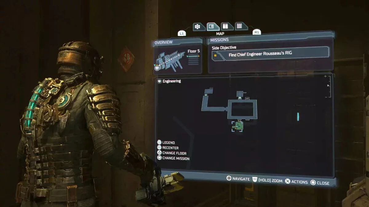 Первый костюм, который вы можете найти в Dead Space, возможно даже до того, как вы доберетесь до консоли, которая активирует побочную миссию. Во время выполнения задания «Добраться до инженерной палубы» (Reach the Engineering Deck), незадолго до того, как вы найдете ключ-карту заправочной станции (Fuel Station keycard), вы сможете пролететь через ангар в невесомости, а затем через силовое поле и выйти в космос. Если вы прижметесь к правой стороне этой области, то вы в конце концов увидите фиолетовый свет, поднимите предмет возле источника O2.