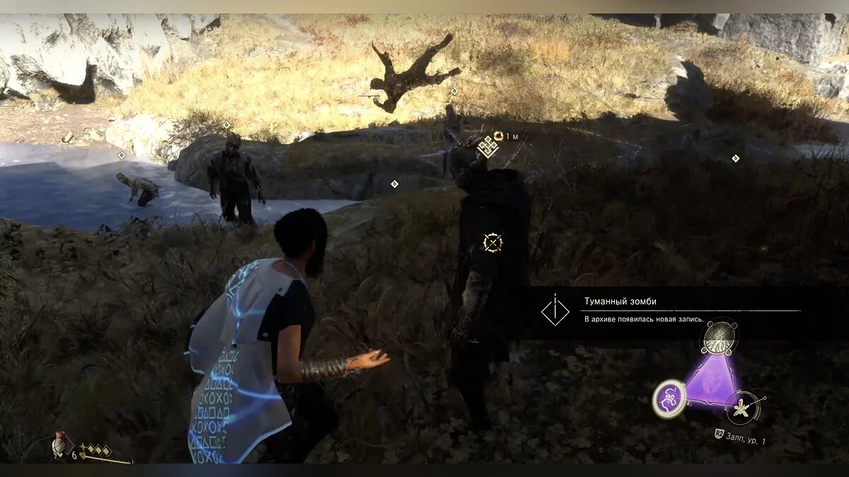 Идите вдоль реки. Здесь вы впервые столкнетесь с зомби — людьми, попавшими под влияние токсичного тумана. Это рядовые противники, с которыми очень легко справиться. Чуть дальше будет ваш первый благословенный источник. Окунувшись, вы узнаете совершенно новое заклинание, которое не добыть другим путем. Пожалуй, источники — самое ценное, что есть в открытом мире, но и добраться до них непросто.