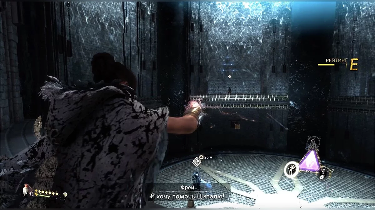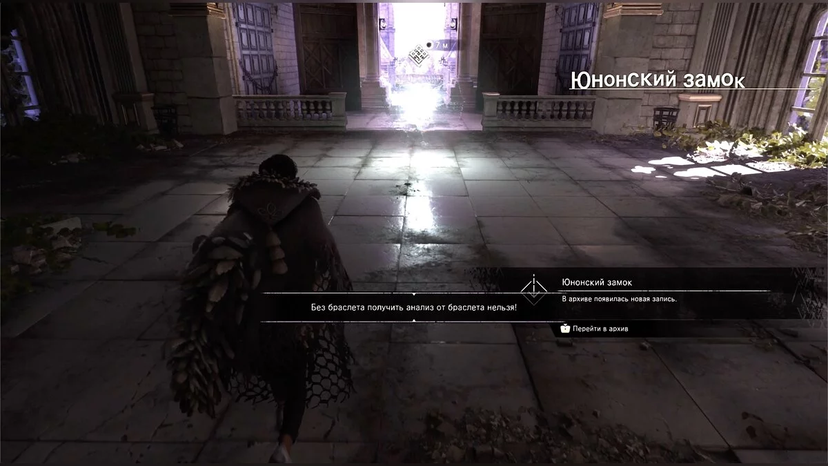 Пообщайтесь с браслетом и выбирайтесь из замка. Вас научат новой механики перемещения — с использованием притягивания к определенным объектам. Когда появится надпись, что быстрые перемещения снова доступны, сразу же телепортируйтесь в Ципаль.