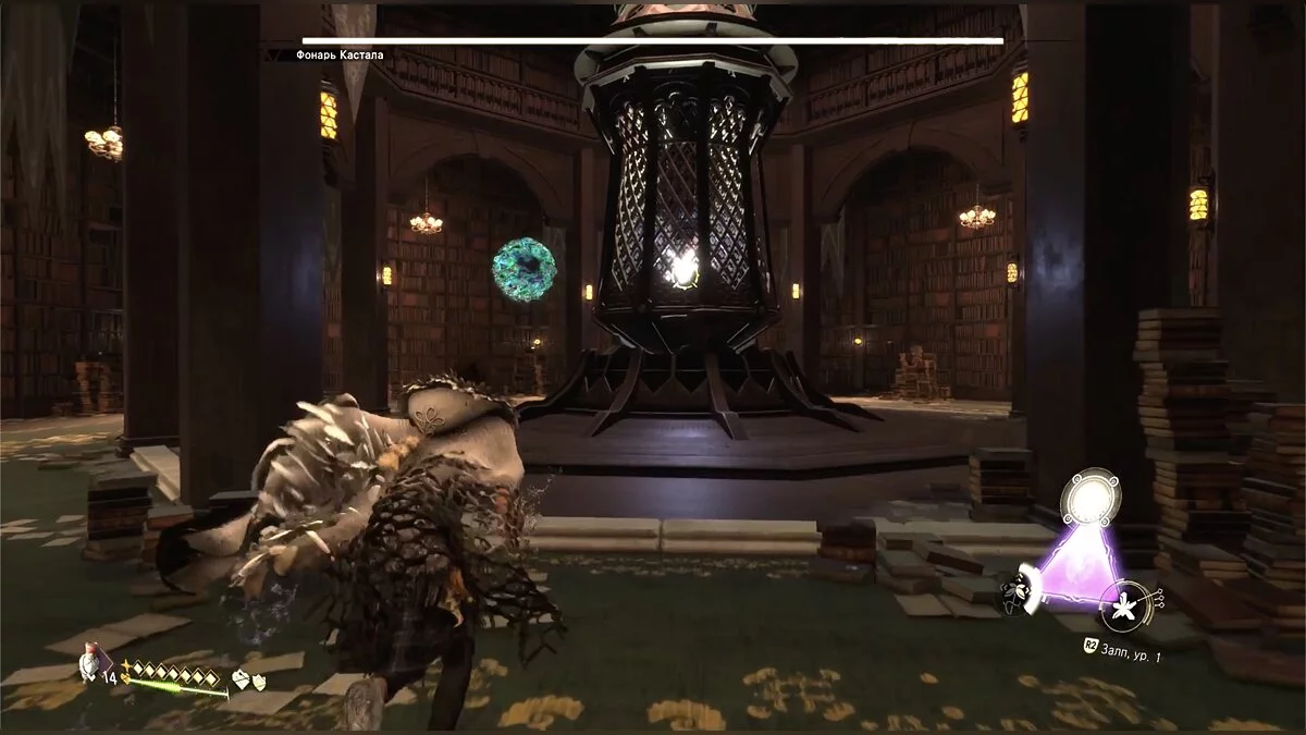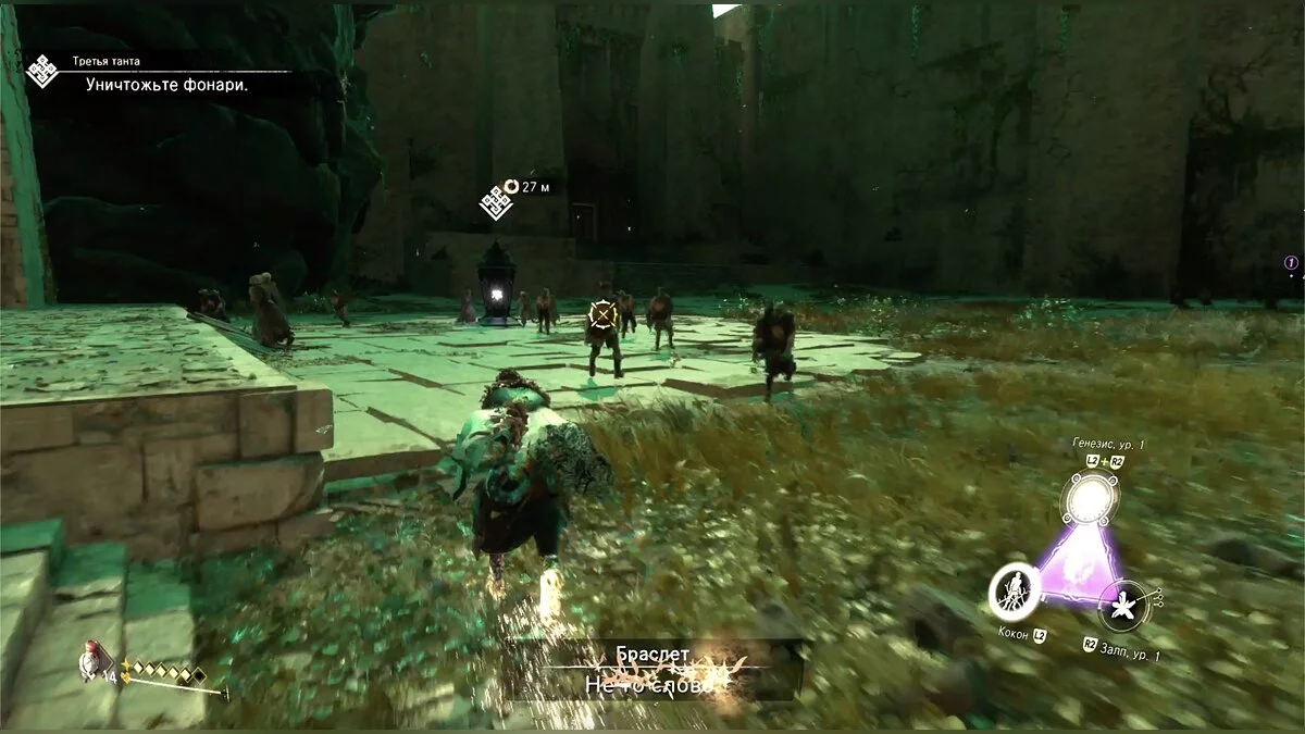 Как только получите управление, обратите внимание на фонарь впереди. Это новая механика, которая будет встречаться только в царстве Олас. Обычные фонари бесконечно возрождают врагов, поэтому вы сначала должны разрушить устройство. Защищенные фонари действуют иначе. Щит не спадет, пока вы не победите всех защитников. Только после этого устройство некоторое время будет доступно для атаки.