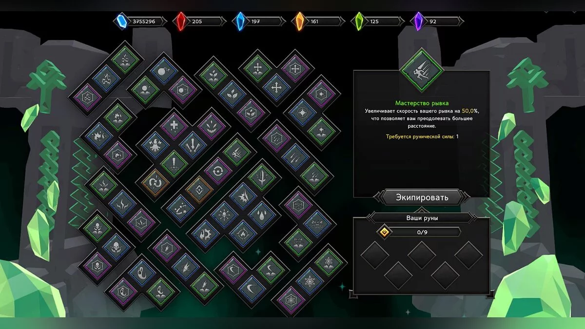 - Мастерство рывка (Dash Mastery), 1 очко — увеличивает скорость вашего рывка на 50%, что приводит к увеличению пройденного расстояния. Руна открывается после победы в матче со всеми проклятиями на II уровне на карте Морозные Пустоши (The Frozen Wastelands);
