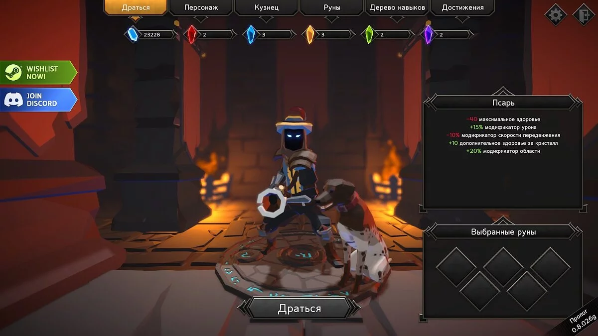 Герой, который играется через эффект «Хрупкость». В активных навыках нужно брать «Картечь», «Напалм», «Взрывную стрелу». У Псаря проблемы с мобильность, поэтому по возможности нужно брать дополнительный рывок и увеличение области поражения. Пассивный навык «Огненный щит» убьёт врага, который решит приблизиться к вам. Руна «Критическое мастерство» поможет добрать недостающий урон.