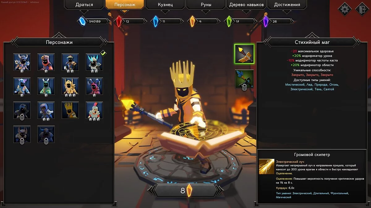 На сегодня лучевые навыки самые сильные в игре. Луч позволяет наносить постоянный урон по всем целям в линии. При этом, если взять «Электрический луч», «Луч света» и «Волшебный луч», то они будут стакаться в один смертоносный луч. Лучше всего брать навыки типа «Электрический». Поскольку все они зависят от крита, то и этот параметр вам необходим. Обязательна руна «Критическое мастерство» (Critical Mastery). Базовая дальность поражения и здоровье на уровне, поэтому нужно следить только за скоростью перемещения.