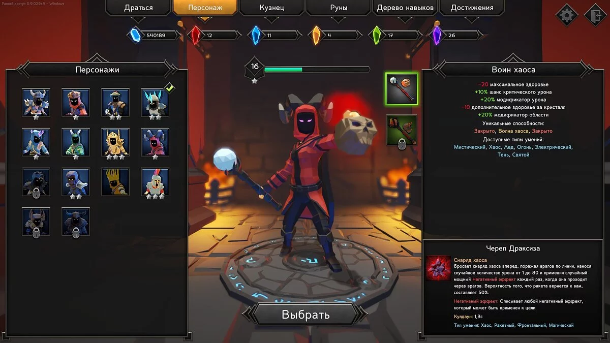 Если верите в удачу, то этот персонаж создан для вас. Специфика способностей типа Хаос — это случайный урон и случайное наложение дебафов. Обязательна руна «Контролируемый хаос» (Controlled Chaos), которая в разы увеличит урон. Всё с приставкой «Хаос» должно быть в сборке этого героя. Белое оружие добавляет активный навык «Снаряд хаоса», который станет вашим основным источником урона. «Големы хаоса» уменьшают входящий урон, позволяя пережить случайное попадание.