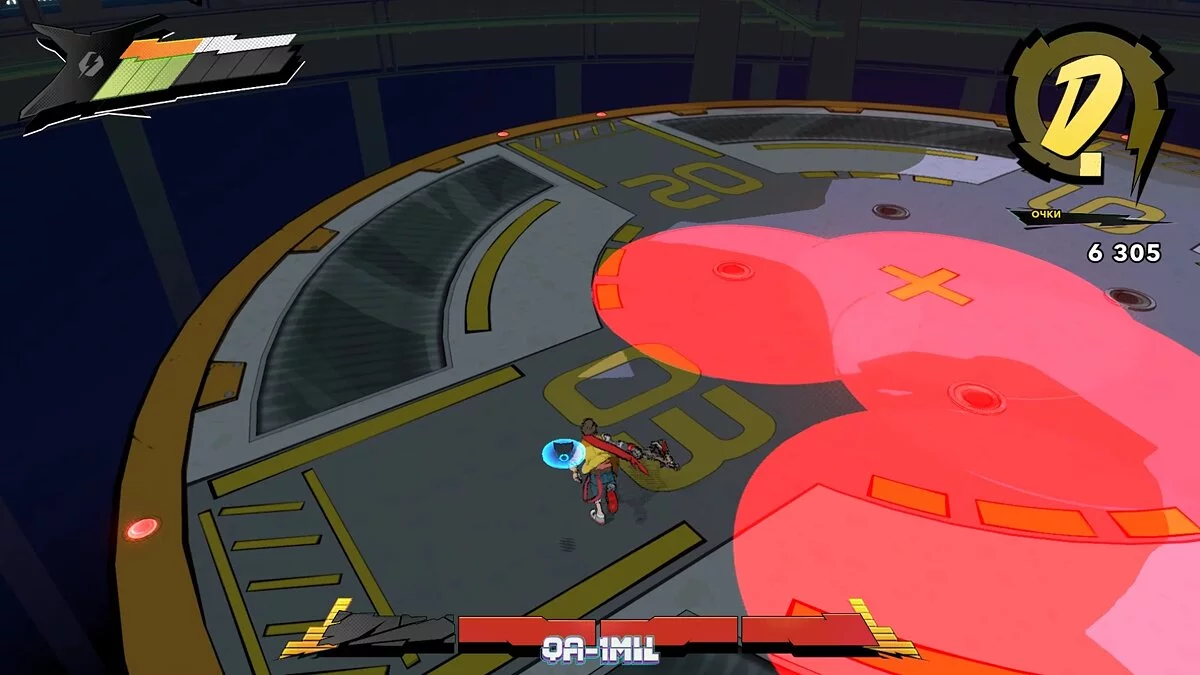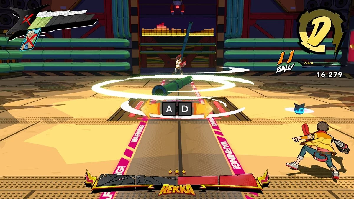Над ареной появятся два магнита — используйте их, чтобы уворачиваться от атак босса. В начале этапа противник будет бить электричеством, поэтому старайтесь не сближаться с ним. Как только эффект закончится, Рэкка снова отправится в центр локации, чтобы зарядить свои импланты. Не теряйте времени и атакуйте её, пока Рэкка уязвима.