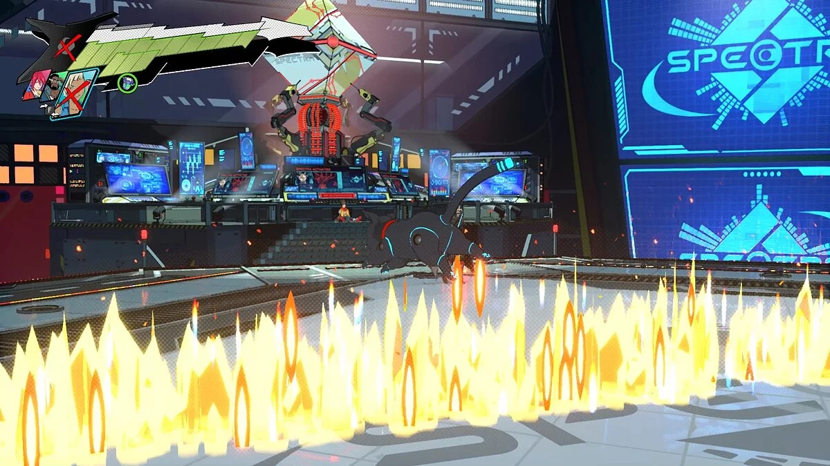 Пока Чай находится в отключке, вы берёте на себя управление Восьмёркой. Она умеет только бегать и выполнять двойной прыжок. Данная механика понадобится, чтобы перепрыгивать стены огня и дважды добраться до Кейла. Когда окажетесь рядом с врагом, нажмите на клавишу действия.