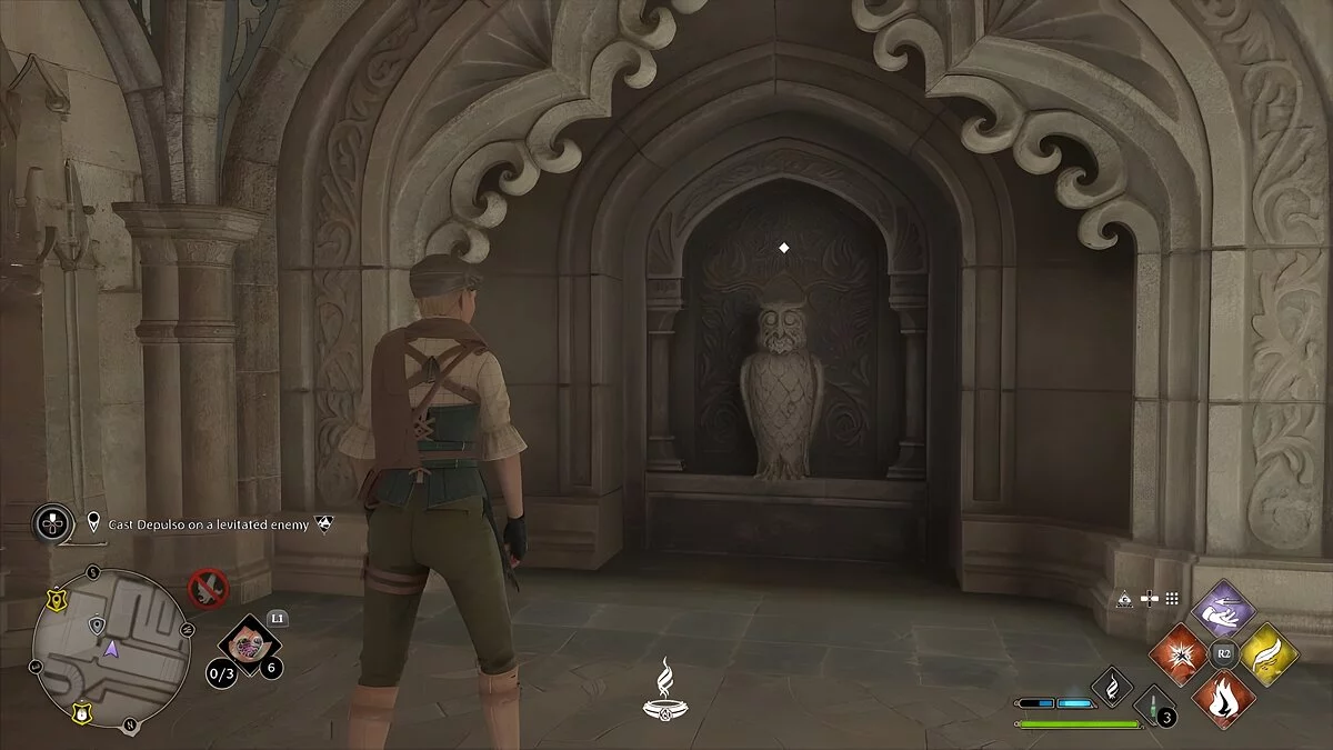 Во время исследования замка вы наверняка наткнётесь на стены, в которых вырезаны статуи сов. Достаточно подойти к сове и повернуть её несколько раз. Так вы получите доступ к спрятанному сундуку.
