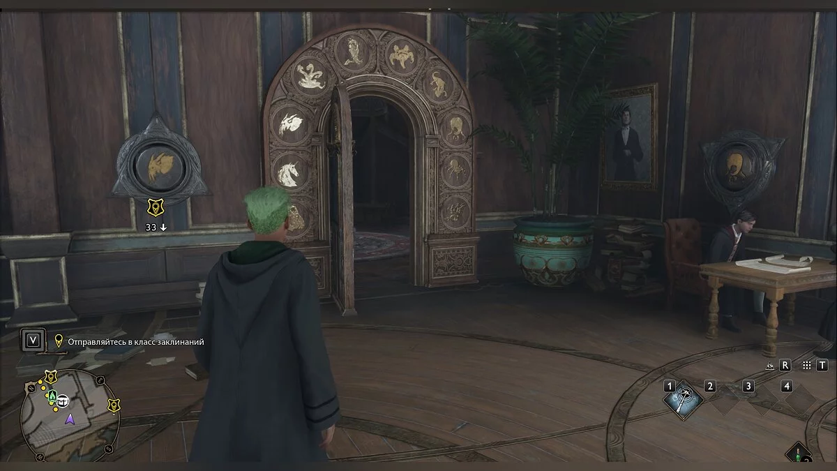 Кабинет директора находится в самой высокой башне Южного крыла школы. Но попасть сюда не так просто, как может показаться на первый взгляд. Если вы не хотите спешить, то просто следуйте по сюжету, пока не начнётся квест «Эффект оборотного зелья». Так вы получите пароль, который нужно произнести рядом со статуей феникса. Но есть способ попасть сюда намного раньше.