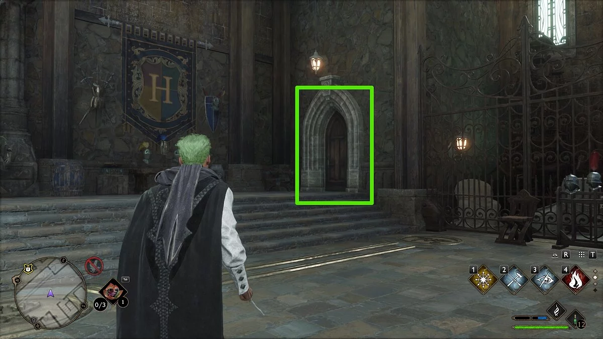 При осмотре часовой башни вы можете заметить запертую дверь с решёткой на первом этаже. Если присмотреться, решётка будет время от времени открываться, но сразу же закроется. Помимо неё, в часовой башне также есть ещё три подобных запертых двери. Чтобы разгадать загадку и получить достижение «Секреты Хогвартса», необходимо разучить два обязательных заклинания: