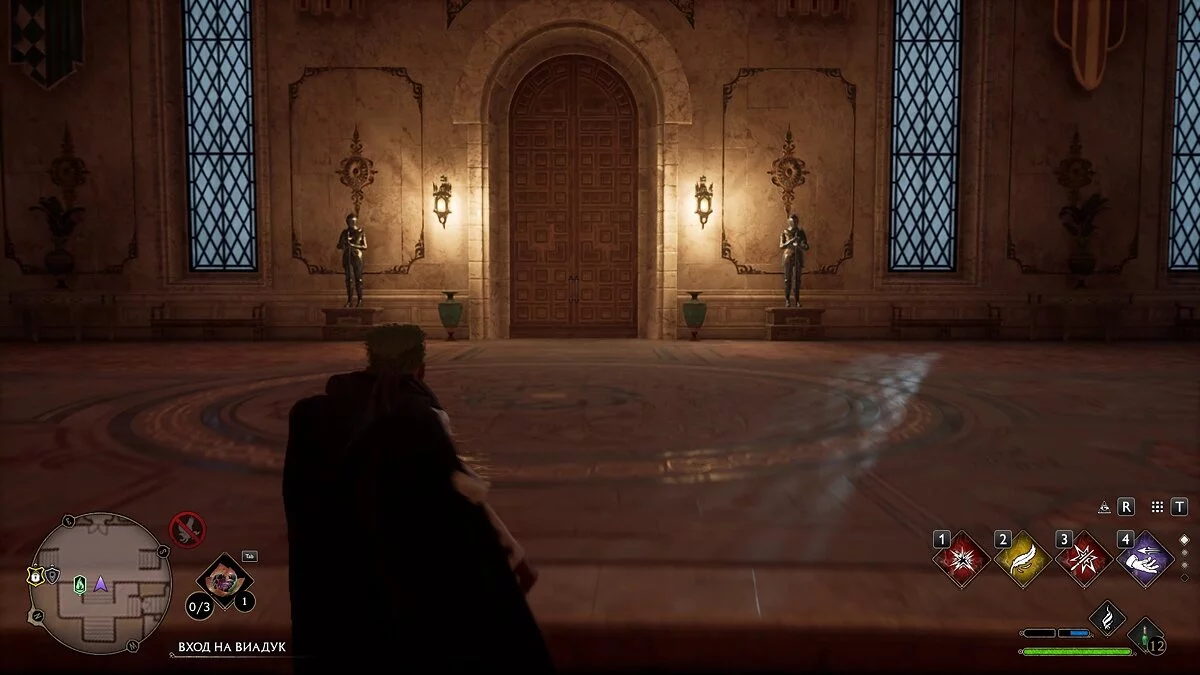 Теперь, чтобы использовать ключ, вам нужно вернуться на Лестницы Хогвартса. Если вы попали в кабинет директора описанным нами способом, то спуститься по лестнице будет невозможно, так как статуя находится внизу. Телепортируйтесь к ближайшей Точке с летучим пламенем и доберитесь до этой статуи с другой стороны. Например, отлично подойдёт телепорт в Зале трофеев.