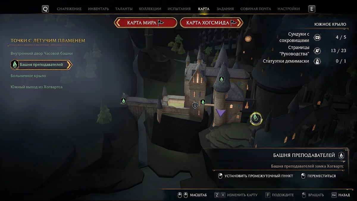 Ближайшая точка быстрого перемещения к этой области — «Башня преподавателей» в Южном крыле. Используйте телепорт и пройдите по коридору до небольшой винтовой лестницы слева. Спуститесь вниз и бегите прямо. Перед поворотом вы увидите большую карту на стене.