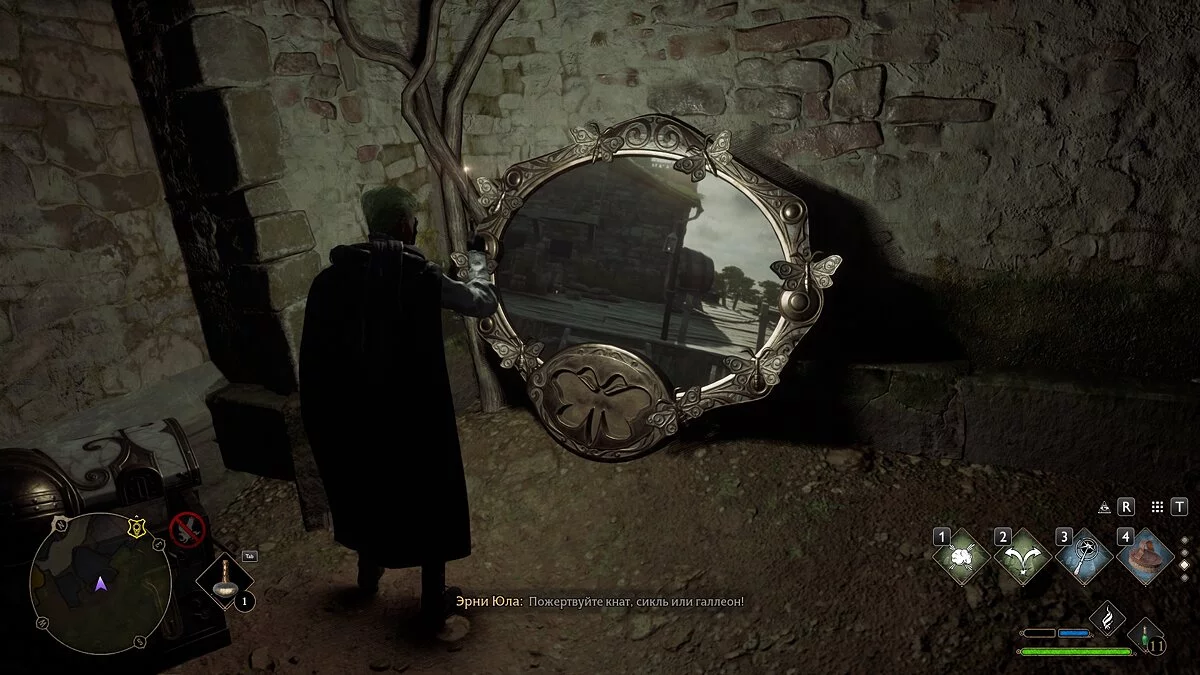 Подойдите к зеркалу и примените заклинание Люмос. В этот момент игроку покажут случайное место, которое находится где-то неподалёку. Отыщите это место, затем найдите мотылька при помощи этого же заклинания и приведите его к зеркалу, чтобы получить Страницы «Руководства».