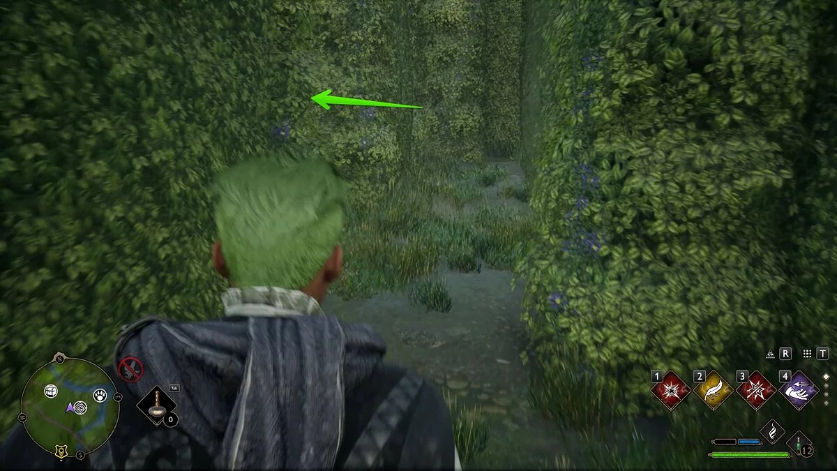 Исследуя окрестности Хогвартса? вы будете сталкиваться с различными загадками и головоломками. Такими испытаниями могут стать и лабиринты из живой изгороди. На данный момент известно о двух подобных загадках. Одна из них находится неподалёку от Верхнего Хогсфилда, в южной части поселения.