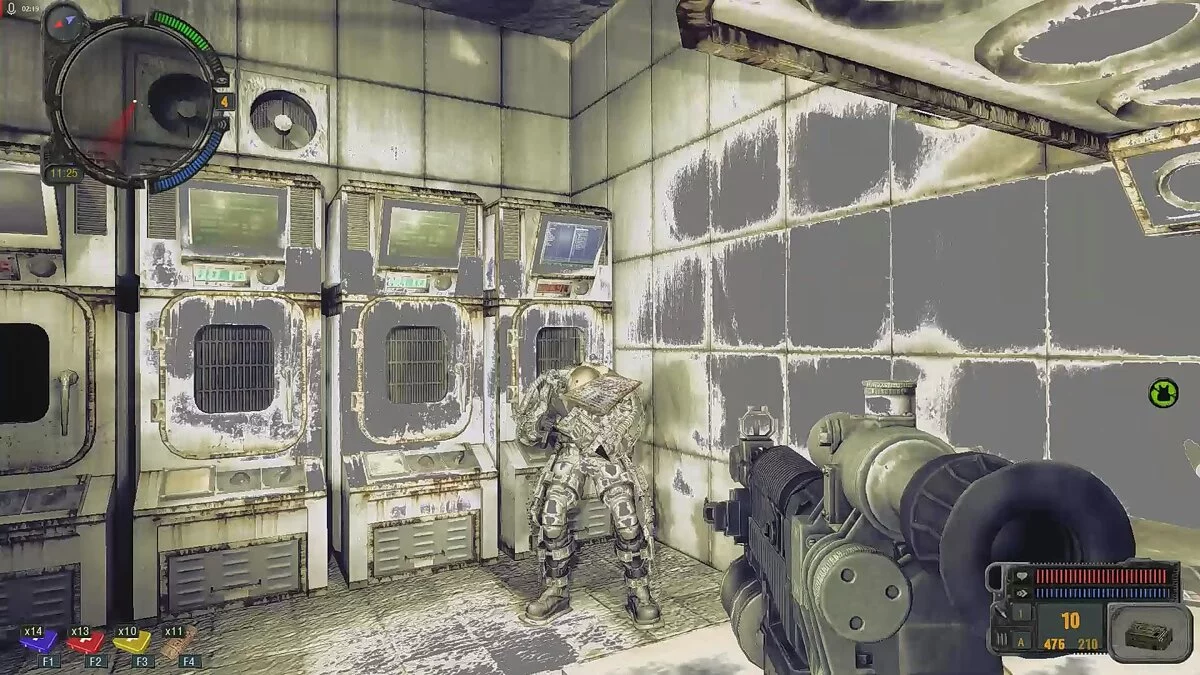 Так вы окажетесь в финальной локации. Ваша задача пройти Лабораторию X11 и выйти прямо в центр зоны. Вскоре вы встретите группу Монолита. Уничтожайте всех, кто попадается вам на пути. Будьте внимательны, так как за некоторыми поворотами вас будут ожидать автоматические турели.