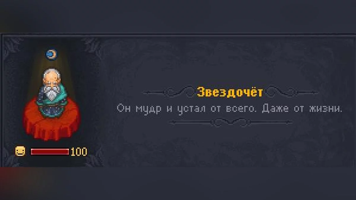 Звездочёт (Уныние). Выходит смотреть на звёзды в телескоп у маяка, справа от деревни. Появляется там один раз в семь дней.