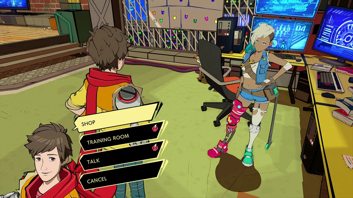 В Hi-Fi Rush очень много секретных мест и закутков, где лежат большие связки деталей. Старайтесь тщательно обыскивать каждую локацию. Чаще смотрите вверх и не бойтесь сворачивать с основного пути. Игра довольно линейна, и вы вряд ли заблудитесь. Не волнуйтесь, что не успеете прокачать героя к финалу. Hi-Fi Rush без проблем проходится без покупок в местном магазине. Доступных с самого начала комбинаций и разбросанных по уровню предметов хватит, чтобы пройти игру на среднем и высоком уровнях сложности.