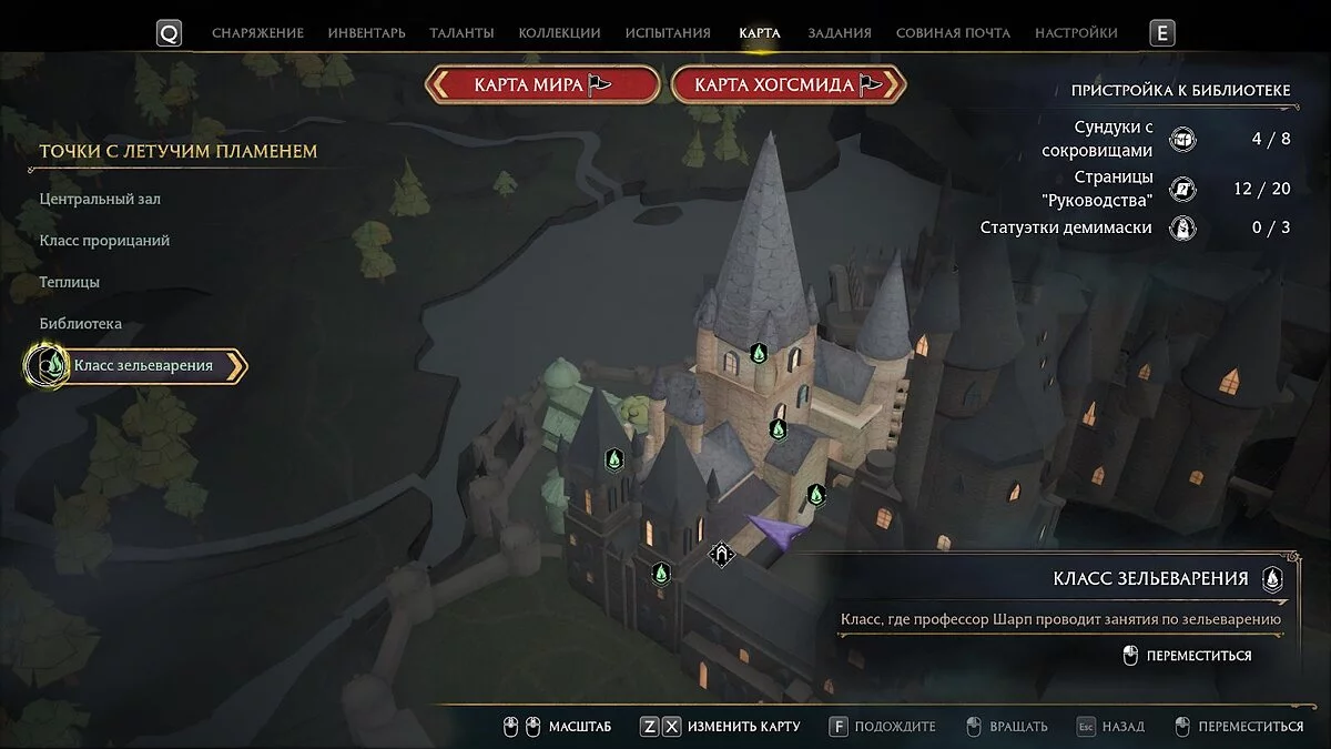 Несмотря на то что игроки могут выбрать один из четырёх факультетов, их местоположение на карте остаётся неизменным. Поэтому совершенно неважно, к какому факультету относится ваш персонаж. Ниже мы опишем месторасположение каждого из них.