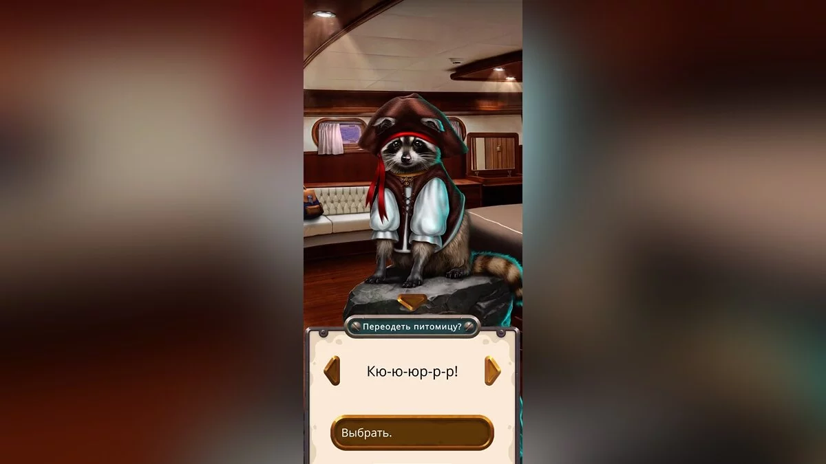 Следующий выбор доступен, если вы взяли енота на борт корабля. Выбор: «Переодеть питомицу?»