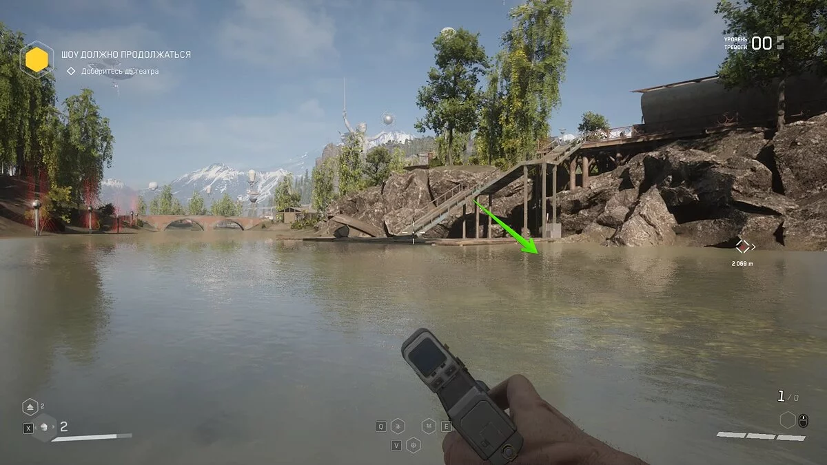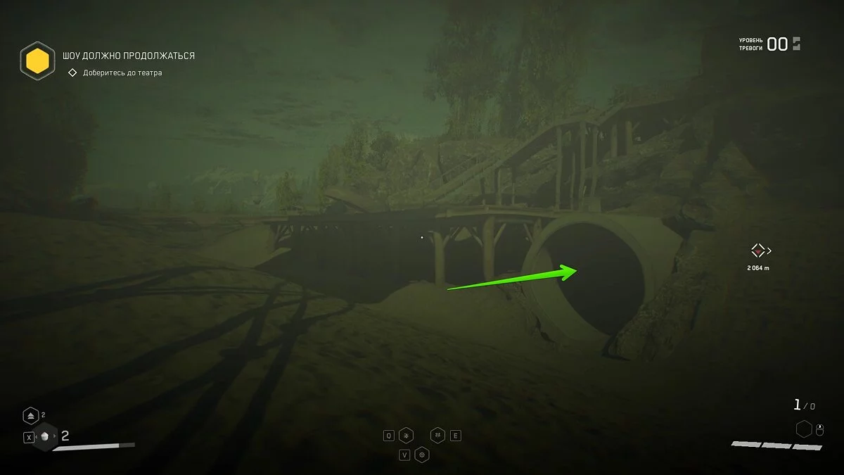 Чтобы попасть в этот полигон, сперва вам придётся запустить модуль «Гриф», который удерживают корни побегов. Для этого отправляйтесь к реке и найдите вход в подводный коллектор. Сверху его не видно, придётся нырять под воду.