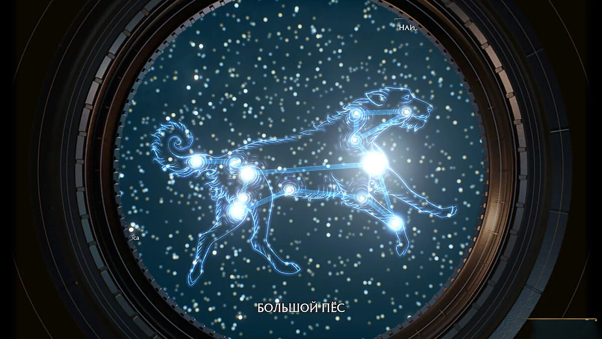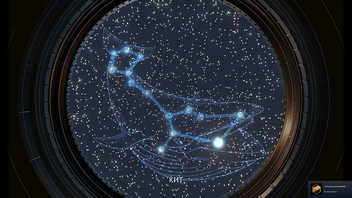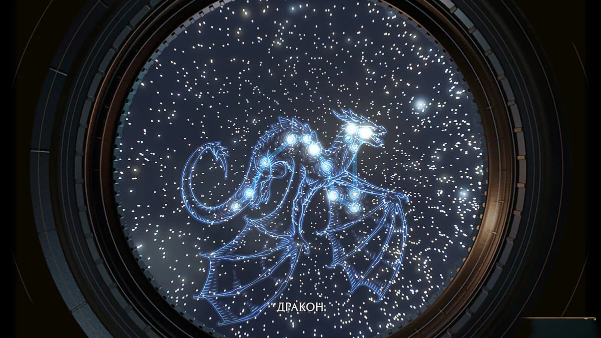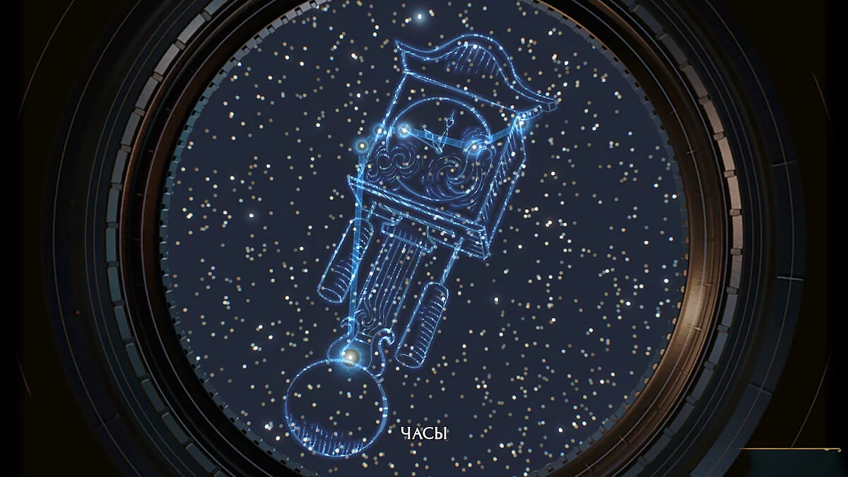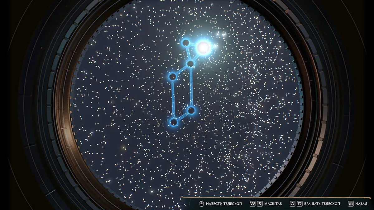 Смотреть на звёзды можно только ночью. Если вы пришли днём, то можете пропустить время в меню карты. Взглянув в телескоп, вы увидите синий силуэт. Это созвездие, которое нужно будет найти на заданном клочке неба. Сначала покрутите масштаб в одну и другую сторону, чтобы понимать размеры. В противном случае вы потратите много времени, пытаясь понять, где находятся нужные звёзды. После этого можете вращать телескоп. Если размер подобран правильно, то система поможет собрать картинку, когда вы будете близки к ответу.